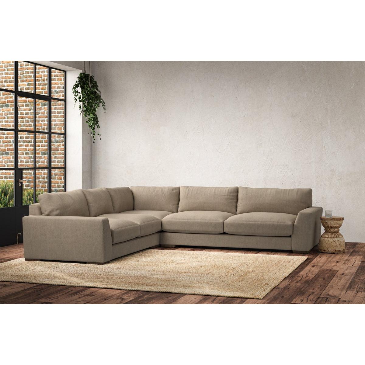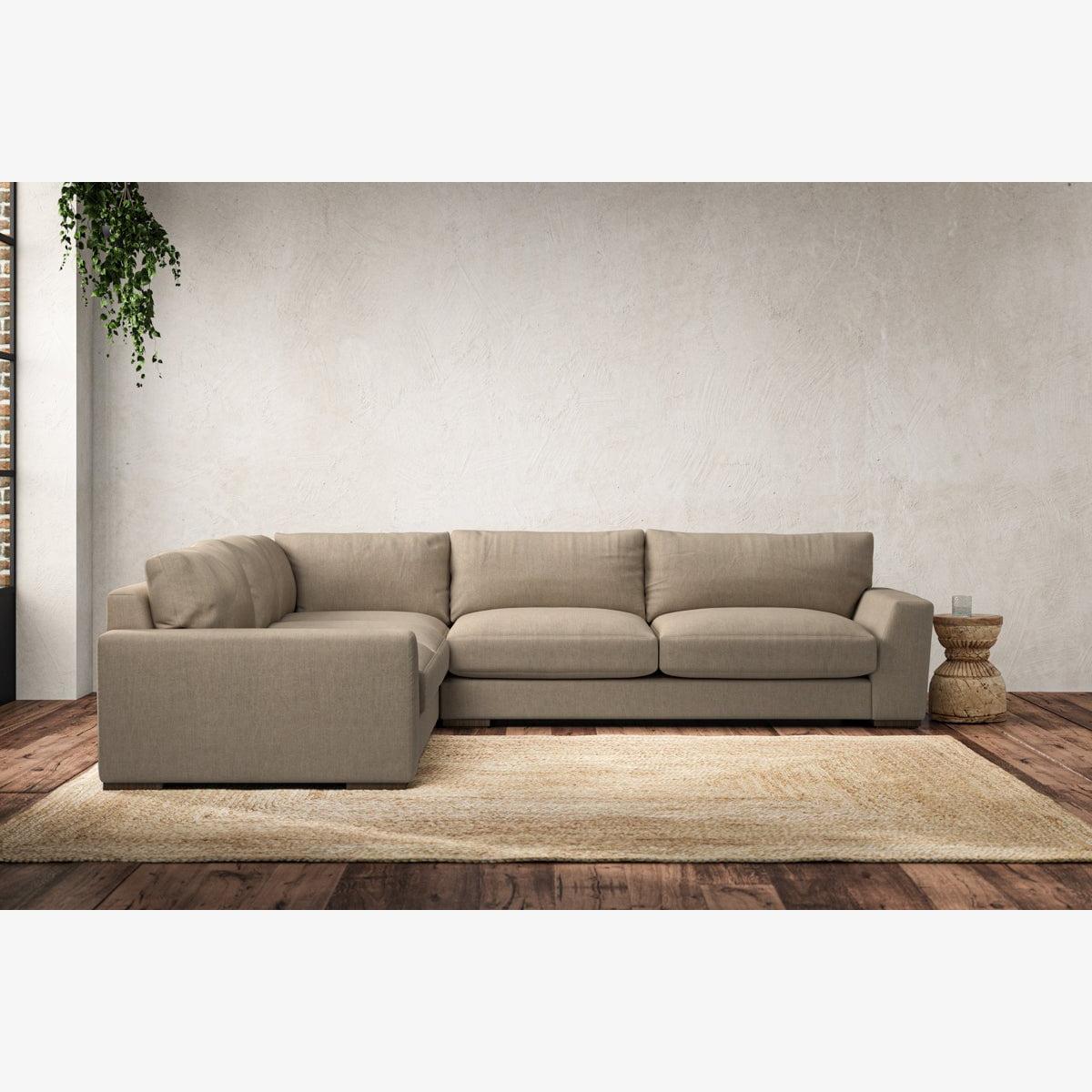 The laid-back sculptural shape of the Guddu large left hand corner sofa brings effortless style to an interior. The generous arms and deep seat cushions make this collection the perfect choice for families or those that like a bit of extra space to stretch out. Details include separate back cushions, exceptional quality fabrics and solid wood block feet. Each piece is handcrafted by experts using traditional techniques for a quality finish that celebrates the best of British craftmanship. The hardwood frame and high-grade steel serpentine springs are selected for enduring quality, and the cushions are made from foam with a fibre wrap for added comfort. The fabric is hand cut to size, playing close attention to the characteristics of the material, and the sculpted hardwood feet provides the finishing detail. Our upholstery fabrics are sourced from Italy’s finest mills and are chosen for their style and quality. We have selected a beautiful heavyweight, soft washed linen with an outstanding texture. Our linen is perfectly suited to upholstery, with an appealing natural, and tactile feel. It is also heavy and durable. The linen is FR treated for domestic upholstery ensuring peace of mind as well as meeting specialist UK furniture requirements. Our curated colour palette offers a variety of 11 sophisticated muted shades. Please note, our white background cut-out photography is shown in Natural for shape and style reference. Fabric Swatch Ordering We recommend ordering fabric swatches before placing your order, giving you the chance to feel the fabric and see your colour choices within your own home. You can order up to 6 free fabric swatches by clicking here. Before placing your order, it's important to take the time to measure the space you intend to place your made-to-order furniture to ensure it fits properly. You can read more in our Sofa Buying Guide.