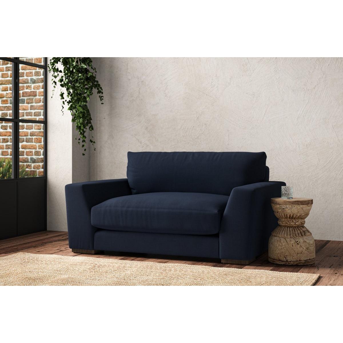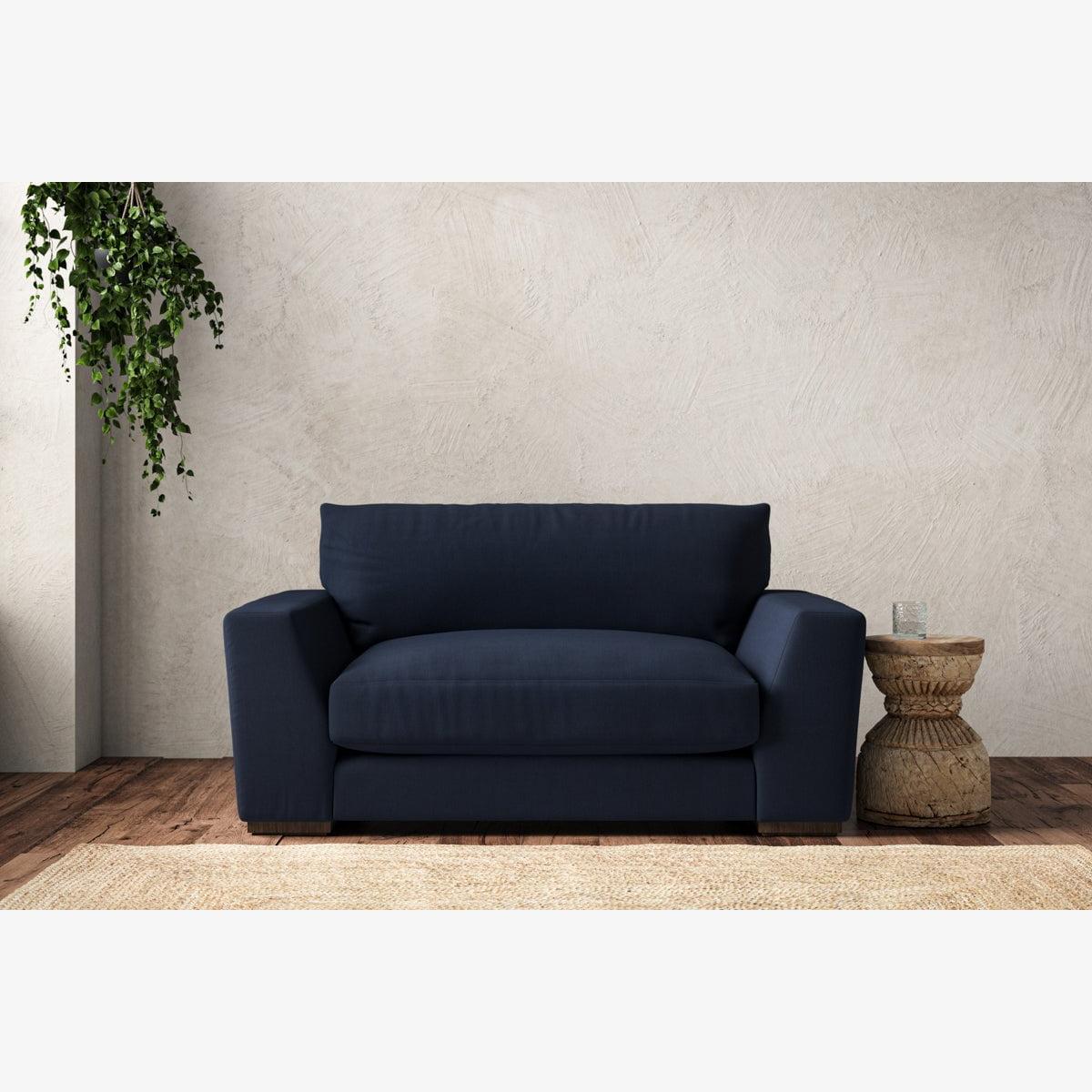 The laid-back sculptural shape of the Guddu loveseat brings effortless style to an interior. The generous arms and deep seat cushions make this collection the perfect choice for families or those that like a bit of extra space to stretch out. Details include separate back cushions, exceptional quality fabrics and solid wood block feet. Each piece is handcrafted by experts using traditional techniques for a quality finish that celebrates the best of British craftmanship. The hardwood frame and high-grade steel serpentine springs are selected for enduring quality, and the cushions are made from foam with a fibre wrap for added comfort. The fabric is hand cut to size, playing close attention to the characteristics of the material, and the sculpted hardwood feet provides the finishing detail. Our upholstery fabrics are sourced from Italy’s finest mills and are chosen for their style and quality. We have selected a beautiful heavyweight, soft washed linen with an outstanding texture. Our linen is perfectly suited to upholstery, with an appealing natural, and tactile feel. It is also heavy and durable. The linen is FR treated for domestic upholstery ensuring peace of mind as well as meeting specialist UK furniture requirements. Our curated colour palette offers a variety of 11 sophisticated muted shades. Please note, our white background cut-out photography is shown in Natural for shape and style reference. Fabric Swatch Ordering We recommend ordering fabric swatches before placing your order, giving you the chance to feel the fabric and see your colour choices within your own home. You can order up to 6 free fabric swatches by clicking here. Before placing your order, it's important to take the time to measure the space you intend to place your made-to-order furniture to ensure it fits properly. You can read more in our Sofa Buying Guide.