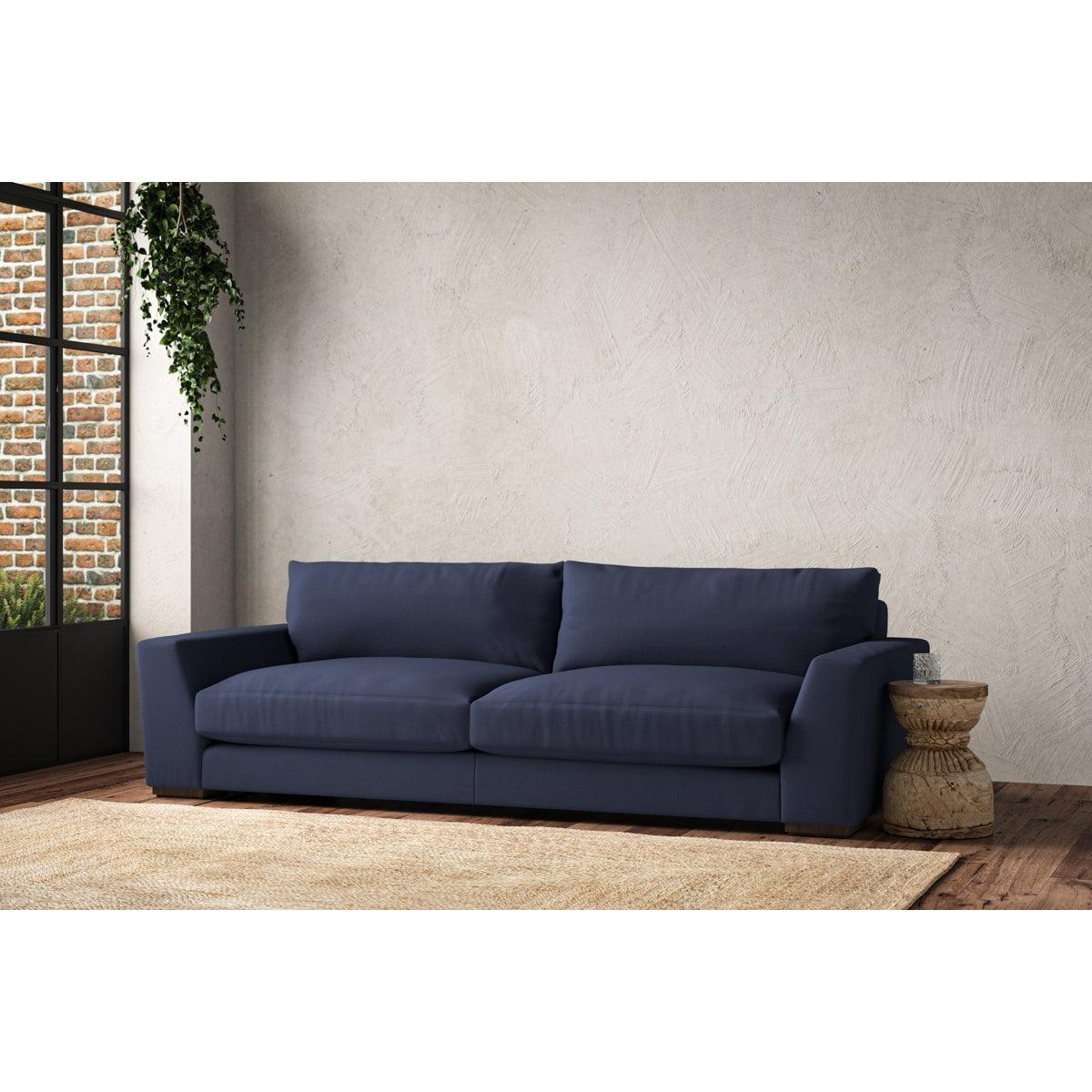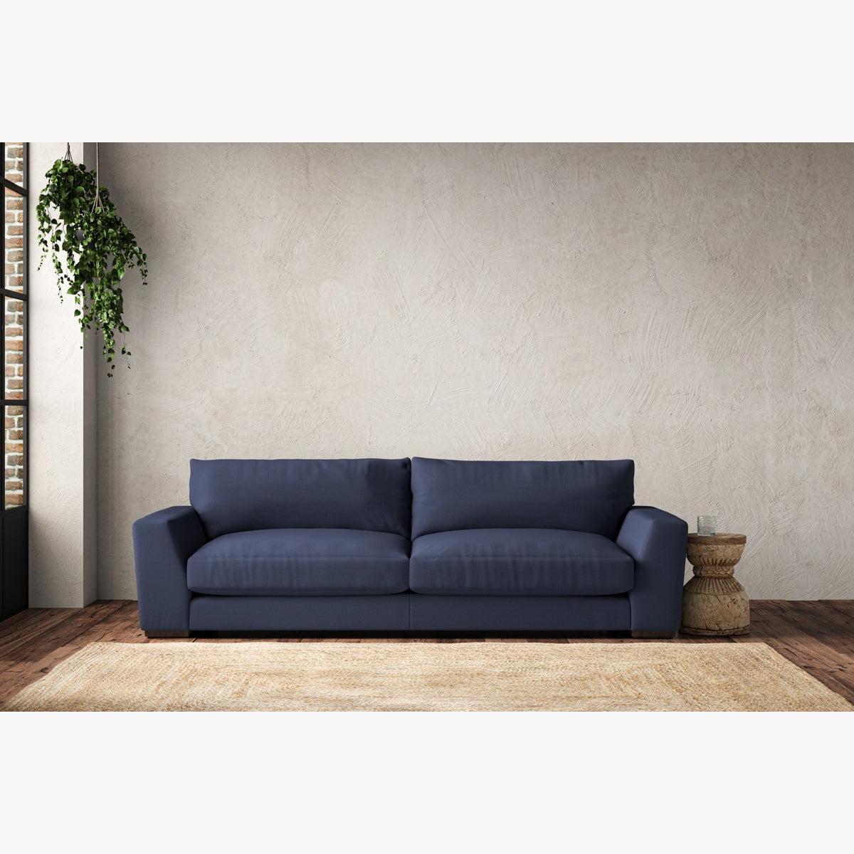 The laid-back sculptural shape of the Guddu grand sofa brings effortless style to an interior. The generous arms and deep seat cushions make this collection the perfect choice for families or those that like a bit of extra space to stretch out. Details include separate back cushions, exceptional quality fabrics and solid wood block feet. Each piece is handcrafted by experts using traditional techniques for a quality finish that celebrates the best of British craftmanship. The hardwood frame and high-grade steel serpentine springs are selected for enduring quality, and the cushions are made from foam with a fibre wrap for added comfort. The fabric is hand cut to size, playing close attention to the characteristics of the material, and the sculpted hardwood feet provides the finishing detail. Our upholstery fabrics are chosen for their style and quality, where all fabrics are FR treated for domestic upholstery ensuring peace of mind as well as meeting specialist UK furniture requirements. Our curated colour palette offers a variety of sophisticated muted shades. Please note, our white background cut-out photography is shown in Natural for shape and style reference. Fabric Swatch Ordering We recommend ordering fabric swatches before placing your order, giving you the chance to feel the fabric and see your colour choices within your own home. You can order up to 6 free fabric swatches by clicking here. Before placing your order, it's important to take the time to measure the space you intend to place your made-to-order furniture to ensure it fits properly. You can read more in our Sofa Buying Guide.
