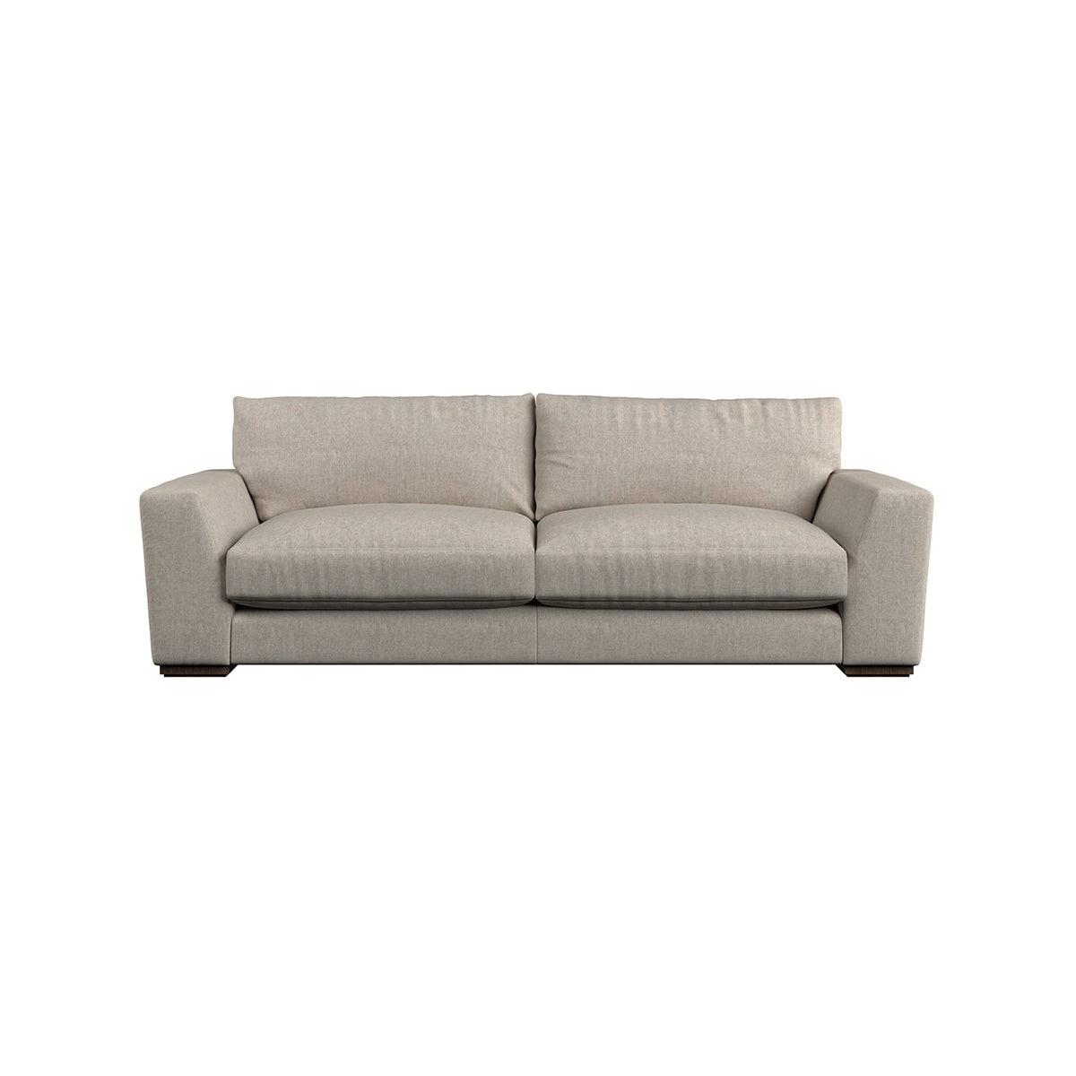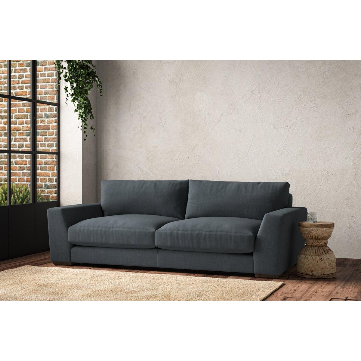 The laid-back sculptural shape of the Guddu large sofa brings effortless style to an interior. The generous arms and deep seat cushions make this collection the perfect choice for families or those that like a bit of extra space to stretch out. Details include separate back cushions, exceptional quality fabrics and solid wood block feet. Each piece is handcrafted by experts using traditional techniques for a quality finish that celebrates the best of British craftmanship. The hardwood frame and high-grade steel serpentine springs are selected for enduring quality, and the cushions are made from foam with a fibre wrap for added comfort. The fabric is hand cut to size, playing close attention to the characteristics of the material, and the sculpted hardwood feet provides the finishing detail. Our upholstery fabrics are sourced from Italy’s finest mills and are chosen for their style and quality. We have selected a beautiful heavyweight, soft washed linen with an outstanding texture. Our linen is perfectly suited to upholstery, with an appealing natural, and tactile feel. It is also heavy and durable. The linen is FR treated for domestic upholstery ensuring peace of mind as well as meeting specialist UK furniture requirements. Our curated colour palette offers a variety of 11 sophisticated muted shades. Please note, our white background cut-out photography is shown in Natural for shape and style reference. Fabric Swatch Ordering We recommend ordering fabric swatches before placing your order, giving you the chance to feel the fabric and see your colour choices within your own home. You can order up to 6 free fabric swatches by clicking here. Before placing your order, it's important to take the time to measure the space you intend to place your made-to-order furniture to ensure it fits properly. You can read more in our Sofa Buying Guide.