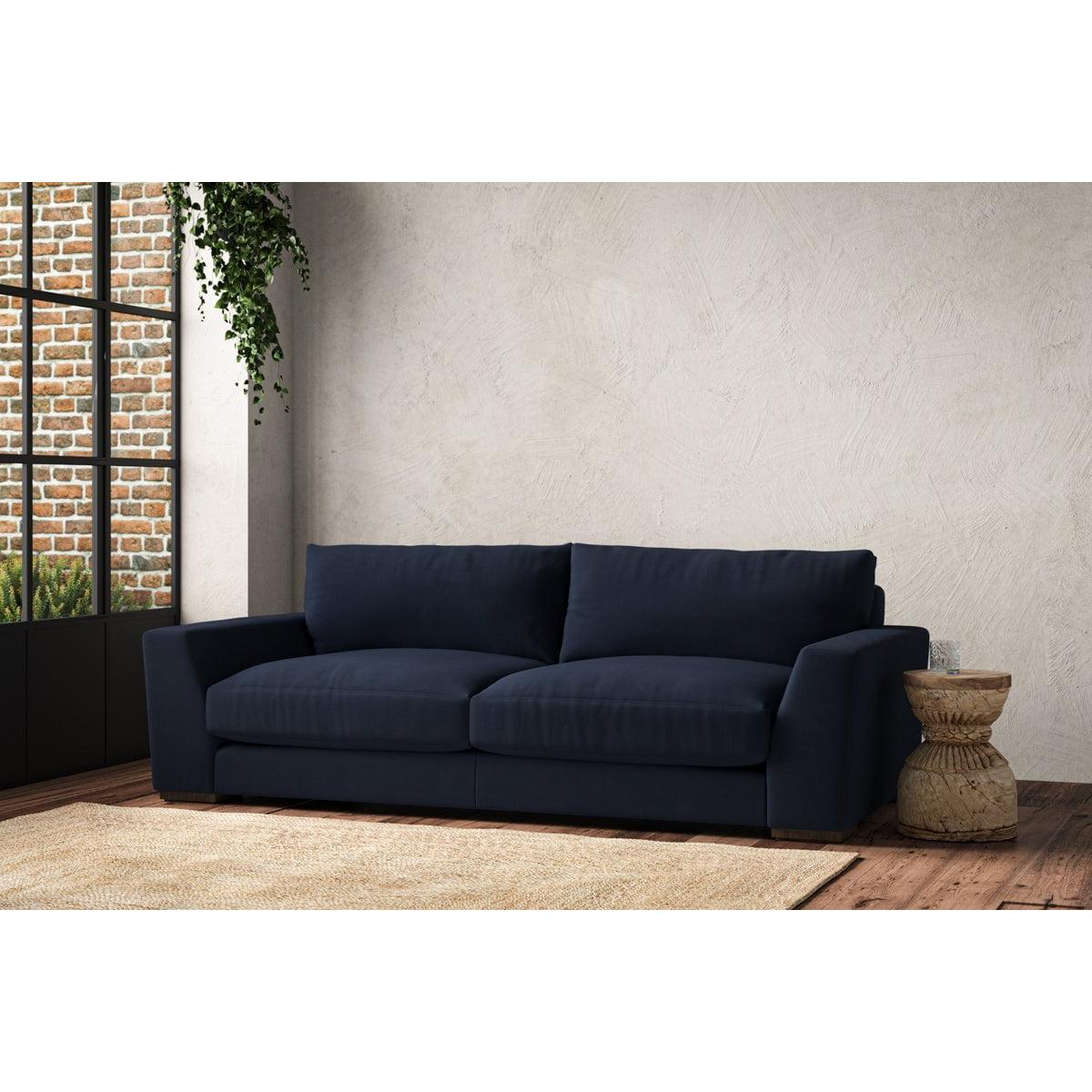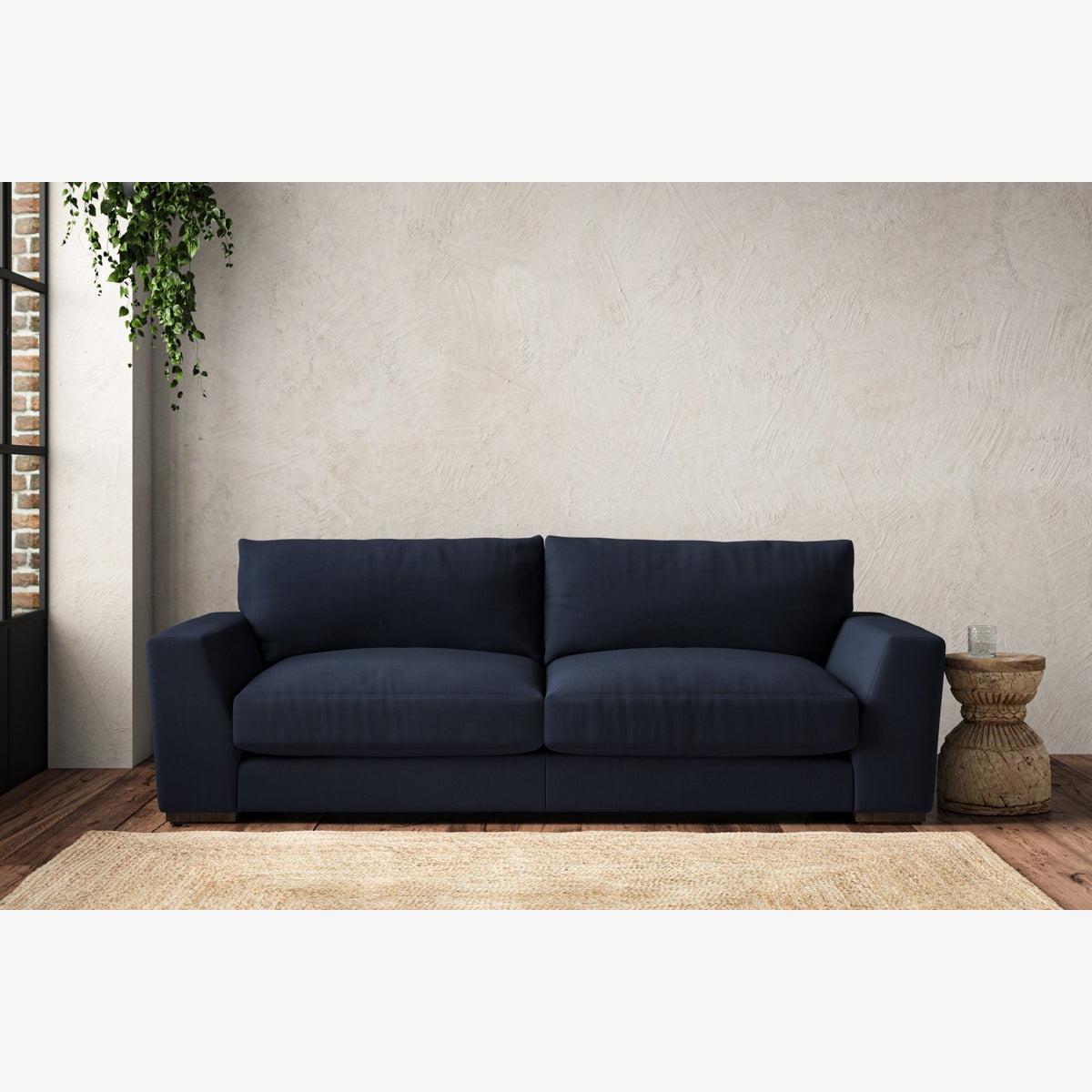 The laid-back sculptural shape of the Guddu large sofa brings effortless style to an interior. The generous arms and deep seat cushions make this collection the perfect choice for families or those that like a bit of extra space to stretch out. Details include separate back cushions, exceptional quality fabrics and solid wood block feet. Each piece is handcrafted by experts using traditional techniques for a quality finish that celebrates the best of British craftmanship. The hardwood frame and high-grade steel serpentine springs are selected for enduring quality, and the cushions are made from foam with a fibre wrap for added comfort. The fabric is hand cut to size, playing close attention to the characteristics of the material, and the sculpted hardwood feet provides the finishing detail. Our upholstery fabrics are sourced from Italy’s finest mills and are chosen for their style and quality. We have selected a beautiful heavyweight, soft washed linen with an outstanding texture. Our linen is perfectly suited to upholstery, with an appealing natural, and tactile feel. It is also heavy and durable. The linen is FR treated for domestic upholstery ensuring peace of mind as well as meeting specialist UK furniture requirements. Our curated colour palette offers a variety of 11 sophisticated muted shades. Please note, our white background cut-out photography is shown in Natural for shape and style reference. Fabric Swatch Ordering We recommend ordering fabric swatches before placing your order, giving you the chance to feel the fabric and see your colour choices within your own home. You can order up to 6 free fabric swatches by clicking here. Before placing your order, it's important to take the time to measure the space you intend to place your made-to-order furniture to ensure it fits properly. You can read more in our Sofa Buying Guide.