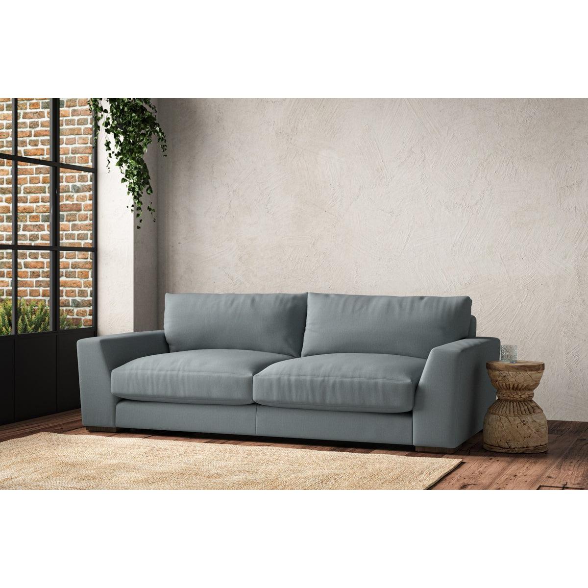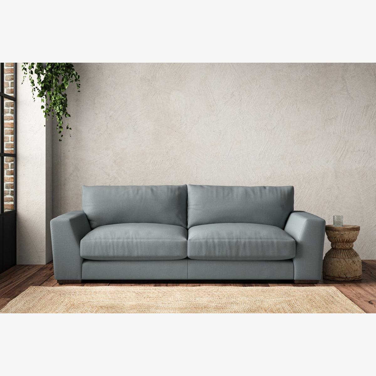 The laid-back sculptural shape of the Guddu large sofa brings effortless style to an interior. The generous arms and deep seat cushions make this collection the perfect choice for families or those that like a bit of extra space to stretch out. Details include separate back cushions, exceptional quality fabrics and solid wood block feet. Each piece is handcrafted by experts using traditional techniques for a quality finish that celebrates the best of British craftmanship. The hardwood frame and high-grade steel serpentine springs are selected for enduring quality, and the cushions are made from foam with a fibre wrap for added comfort. The fabric is hand cut to size, playing close attention to the characteristics of the material, and the sculpted hardwood feet provides the finishing detail. Our upholstery fabrics are chosen for their style and quality, where all fabrics are FR treated for domestic upholstery ensuring peace of mind as well as meeting specialist UK furniture requirements. Our curated colour palette offers a variety of sophisticated muted shades. Please note, our white background cut-out photography is shown in Natural for shape and style reference. Fabric Swatch Ordering We recommend ordering fabric swatches before placing your order, giving you the chance to feel the fabric and see your colour choices within your own home. You can order up to 6 free fabric swatches by clicking here. Before placing your order, it's important to take the time to measure the space you intend to place your made-to-order furniture to ensure it fits properly. You can read more in our Sofa Buying Guide.