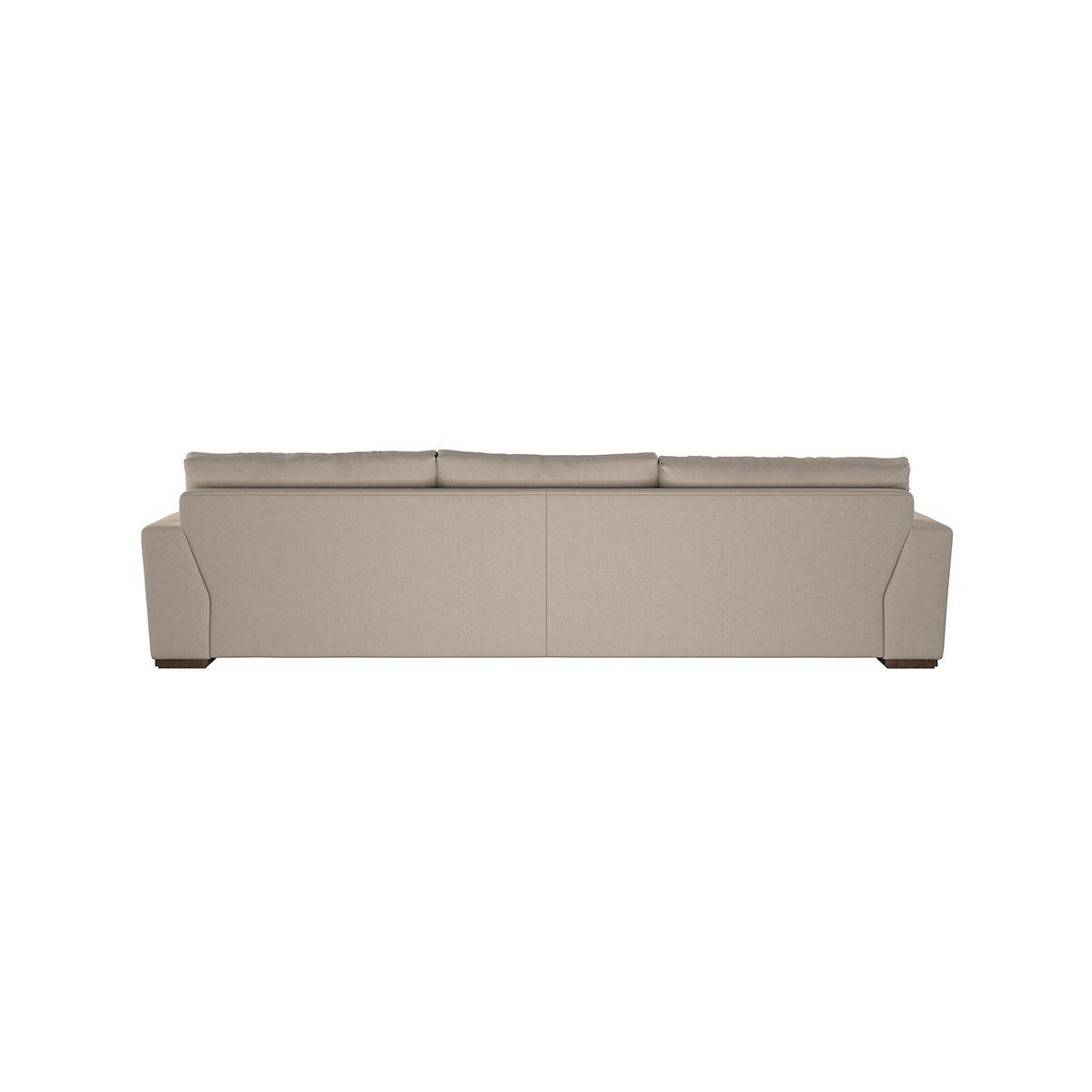 The laid-back sculptural shape of the Guddu super grand sofa brings effortless style to an interior. The generous arms and deep seat cushions make this collection the perfect choice for families or those that like a bit of extra space to stretch out. Details include separate back cushions, exceptional quality fabrics and solid wood block feet. Each piece is handcrafted by experts using traditional techniques for a quality finish that celebrates the best of British craftmanship. The hardwood frame and high-grade steel serpentine springs are selected for enduring quality, and the cushions are made from foam with a fibre wrap for added comfort. The fabric is hand cut to size, playing close attention to the characteristics of the material, and the sculpted hardwood feet provides the finishing detail. Our upholstery fabrics are chosen for their style and quality, where all fabrics are FR treated for domestic upholstery ensuring peace of mind as well as meeting specialist UK furniture requirements. Our curated colour palette offers a variety of sophisticated muted shades. Please note, our white background cut-out photography is shown in Natural for shape and style reference. Fabric Swatch Ordering We recommend ordering fabric swatches before placing your order, giving you the chance to feel the fabric and see your colour choices within your own home. You can order up to 6 free fabric swatches by clicking here. Before placing your order, it's important to take the time to measure the space you intend to place your made-to-order furniture to ensure it fits properly. You can read more in our Sofa Buying Guide.