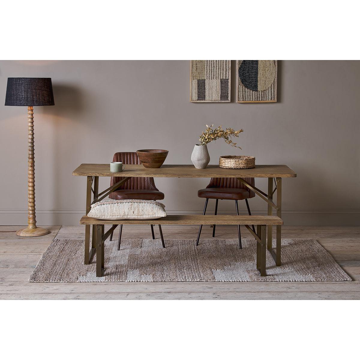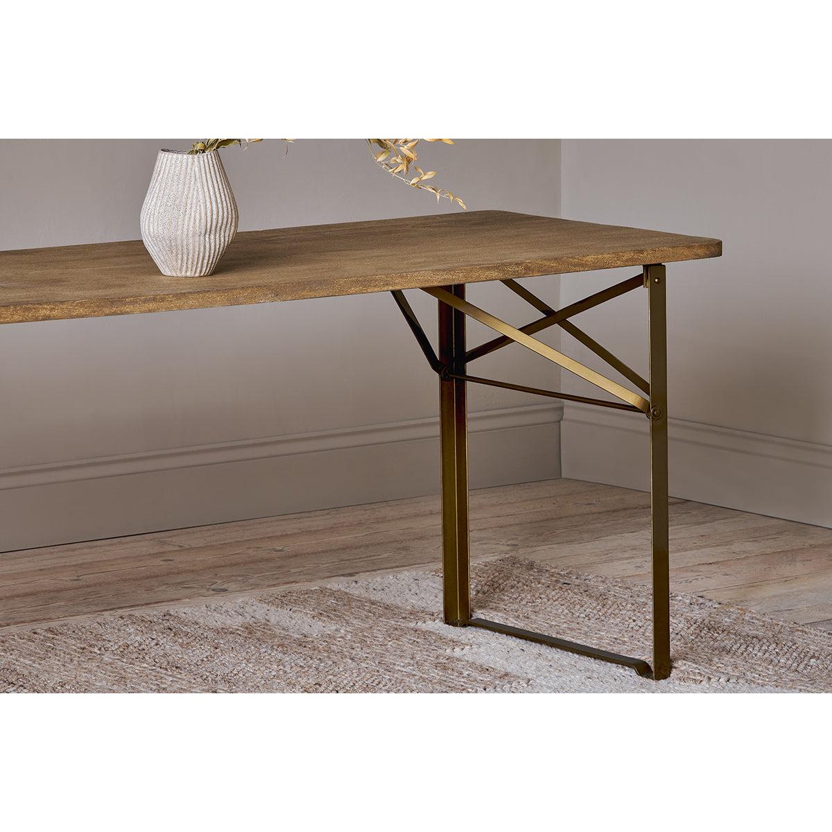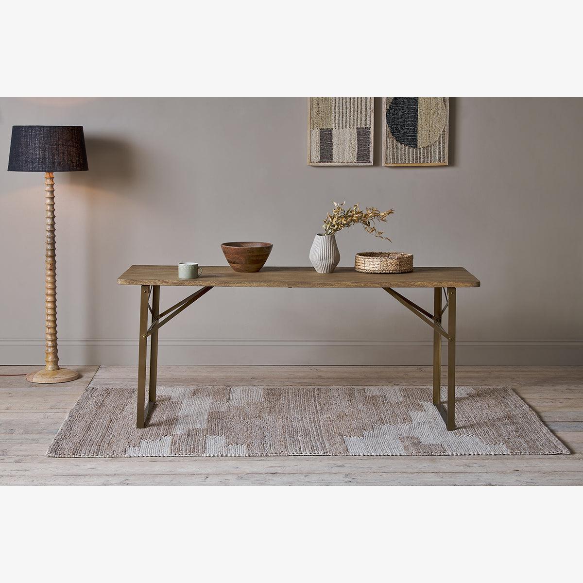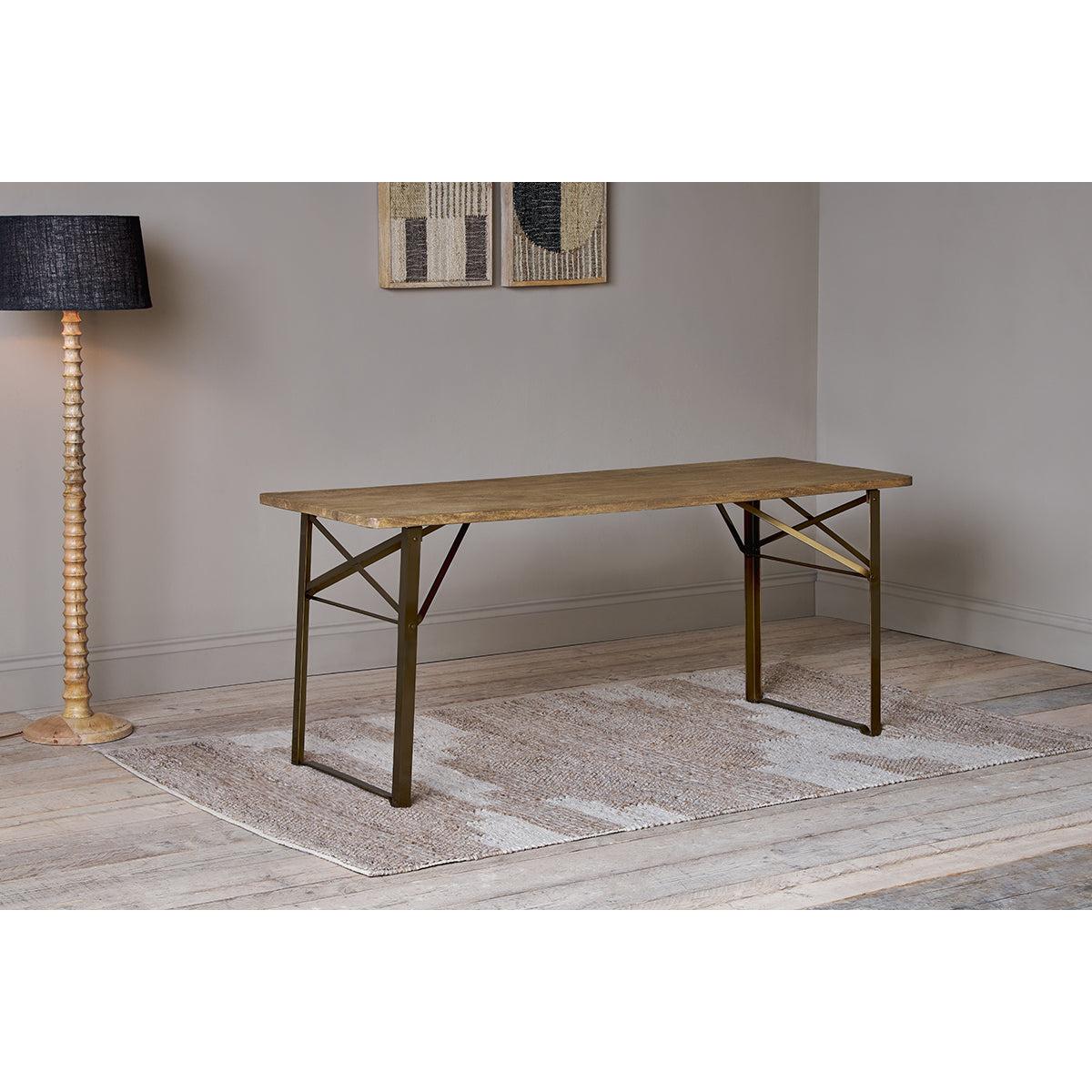 Nkuku Hanita Mango Wood Folding Dining Table | Tables | Natural/Antique Brass