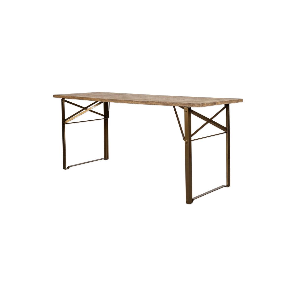 Perfectly designed for small spaces, the industrial-style Hanita folding dining is both practical and durable. Made from solid sustainable mango wood with an attractive walnut finish and an antique brass frame, it pairs up beautifully with the matching Hanita bench and also makes a great desk. Folds flat making it perfect for storage.