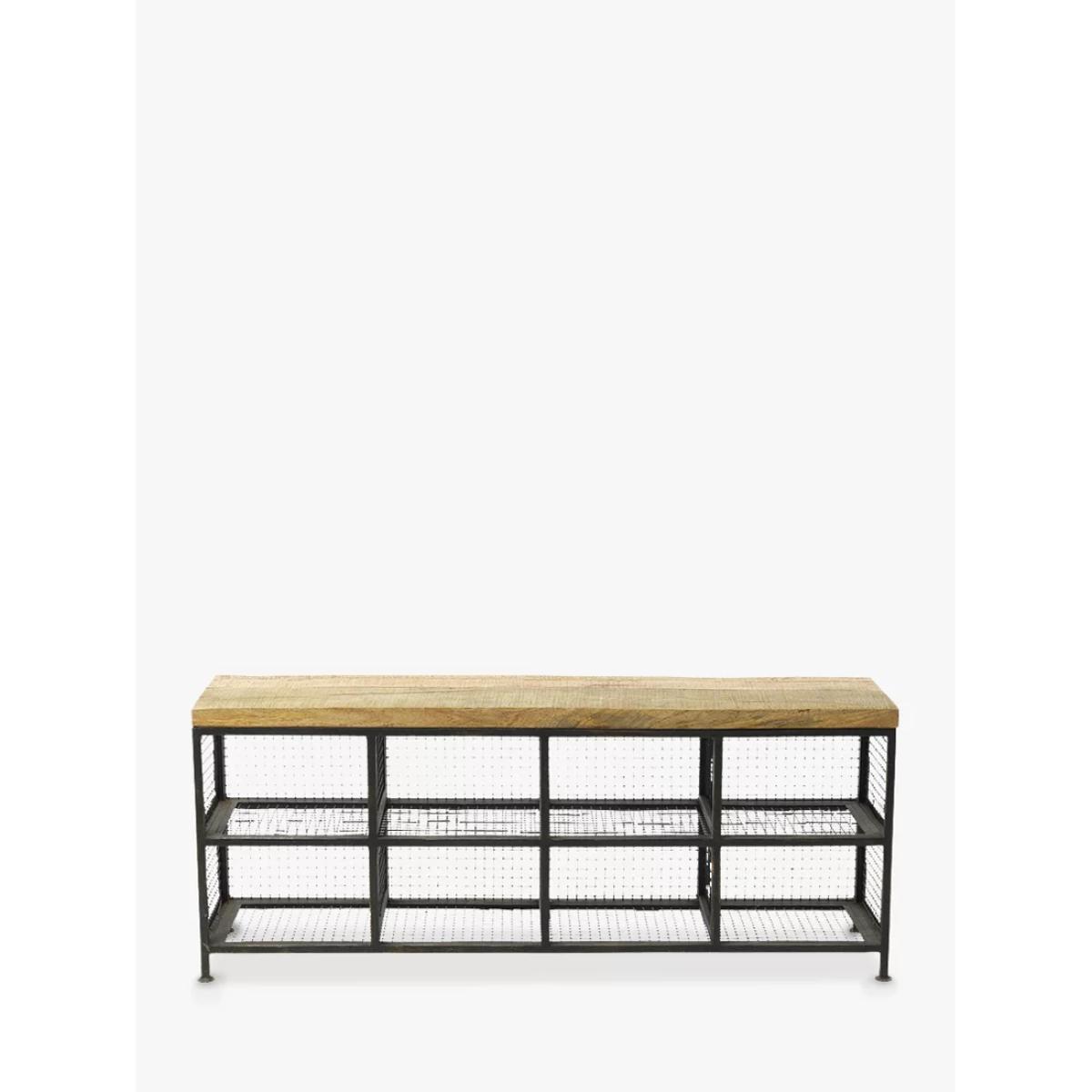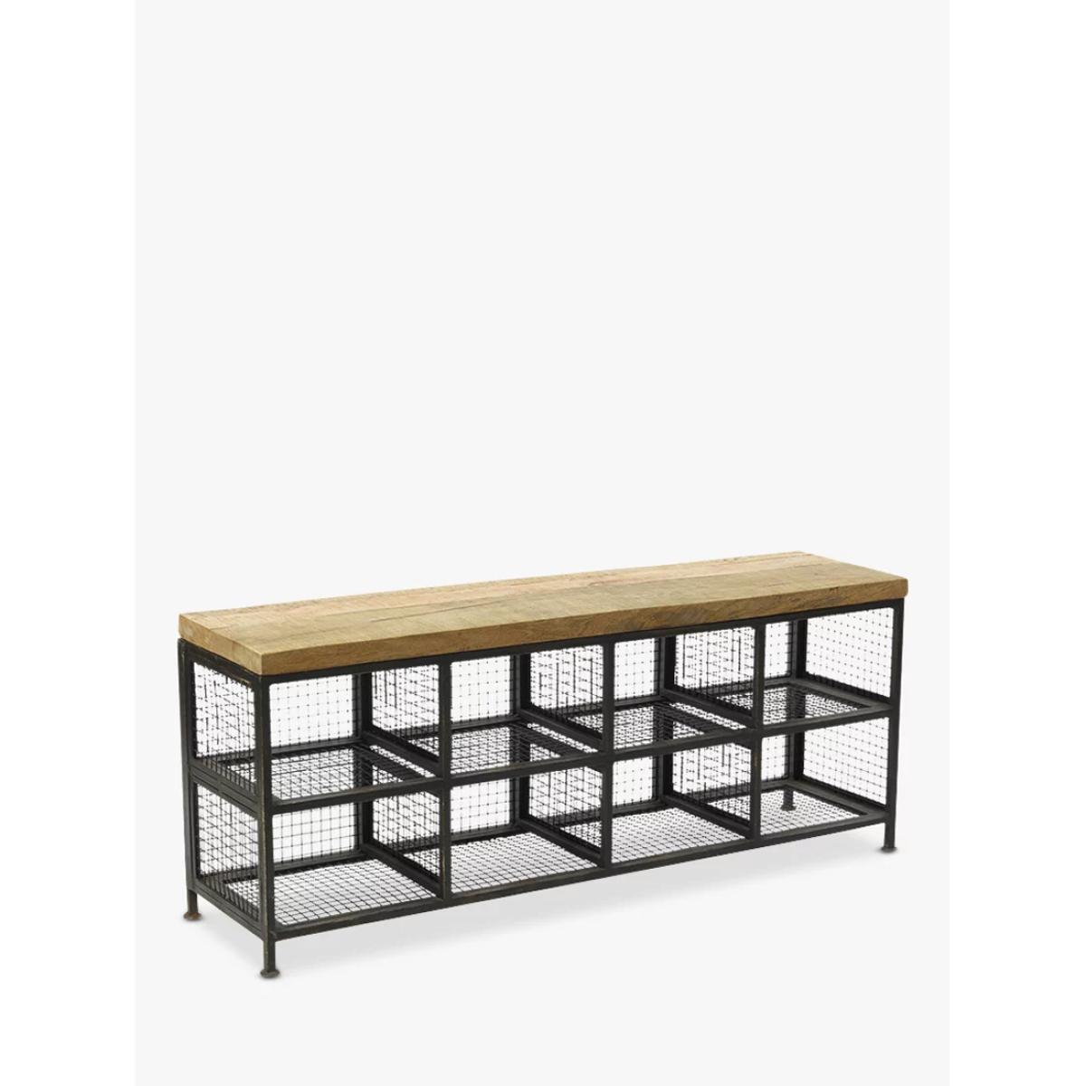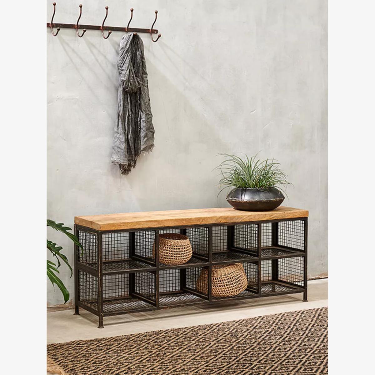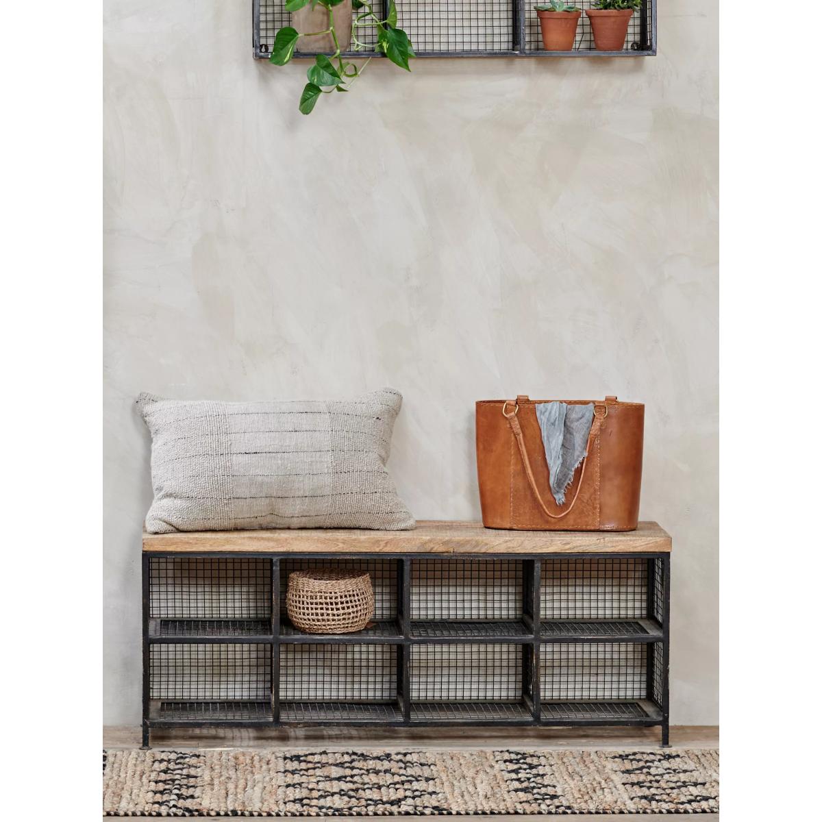 The Nkuku Hasa storage bench is as practical as it is stylish with eight handy compartments meaning there's plenty of storage space. Made by skilled artisans in India using traditional techniques the frame is soldered from iron which means it's incredibly sturdy and also gives it a beautiful, industrial aesthetic that would suit your hallway or utility room. The bench seat is made from solid mango wood which has come from mango trees that have stopped bearing fruit. This allows the farmers to plant more trees and provides them with a supplementary income.