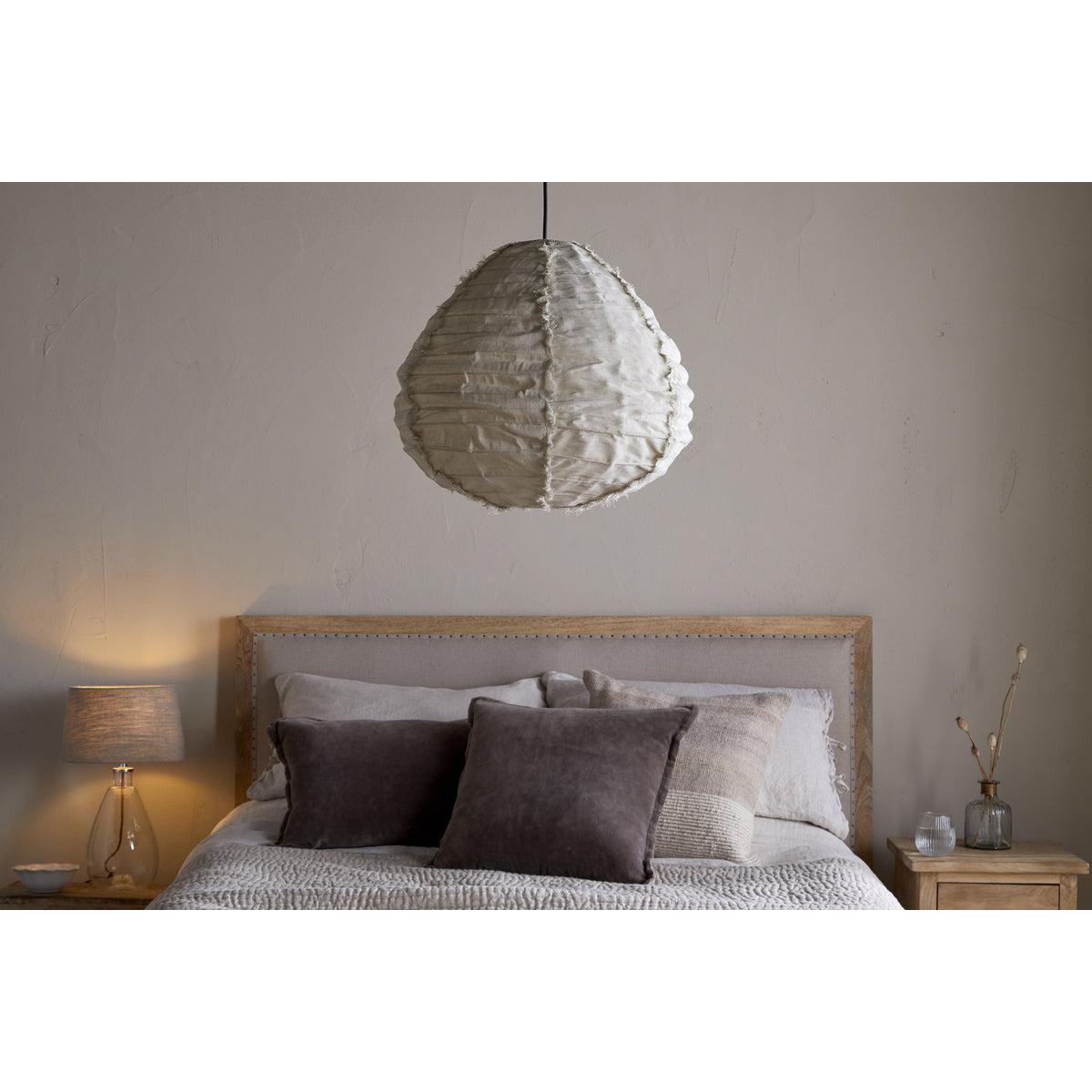 Our Hirana Linen lampshade is the epitome of softness, making it the perfect addition to your bedroom or cosy space. Designed for easy installation, it can be fitted to an existing pendant or used with our Otti pendant fitting, no electrician required. The textured linen beautifully diffuses light, creating a warm and inviting glow. This understated yet stunning shade makes an ideal bedroom light.