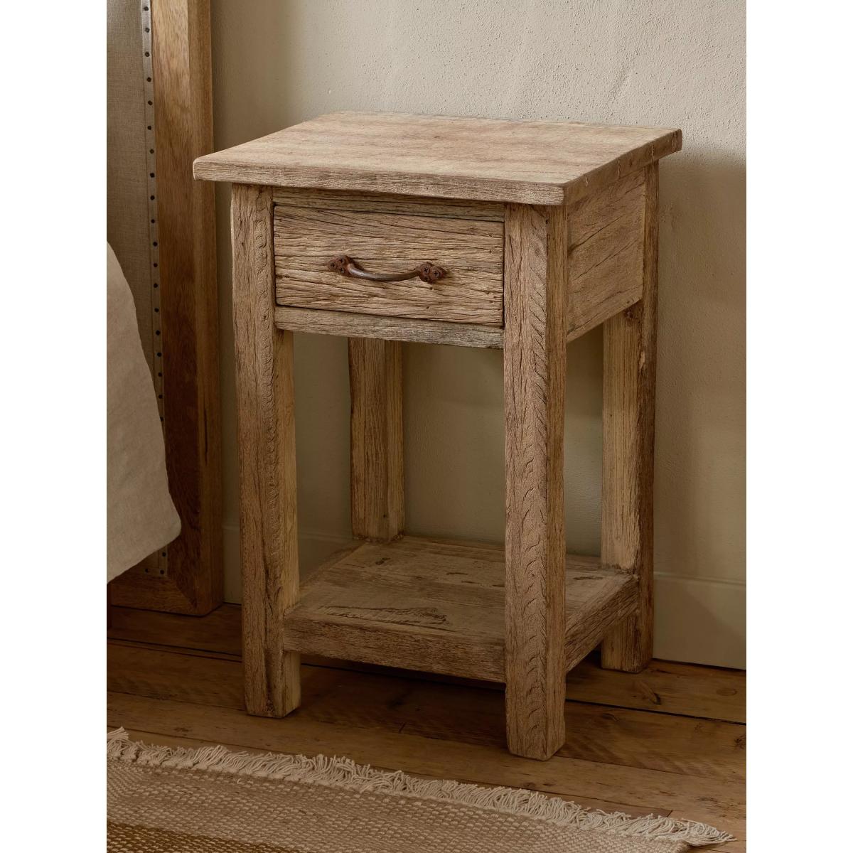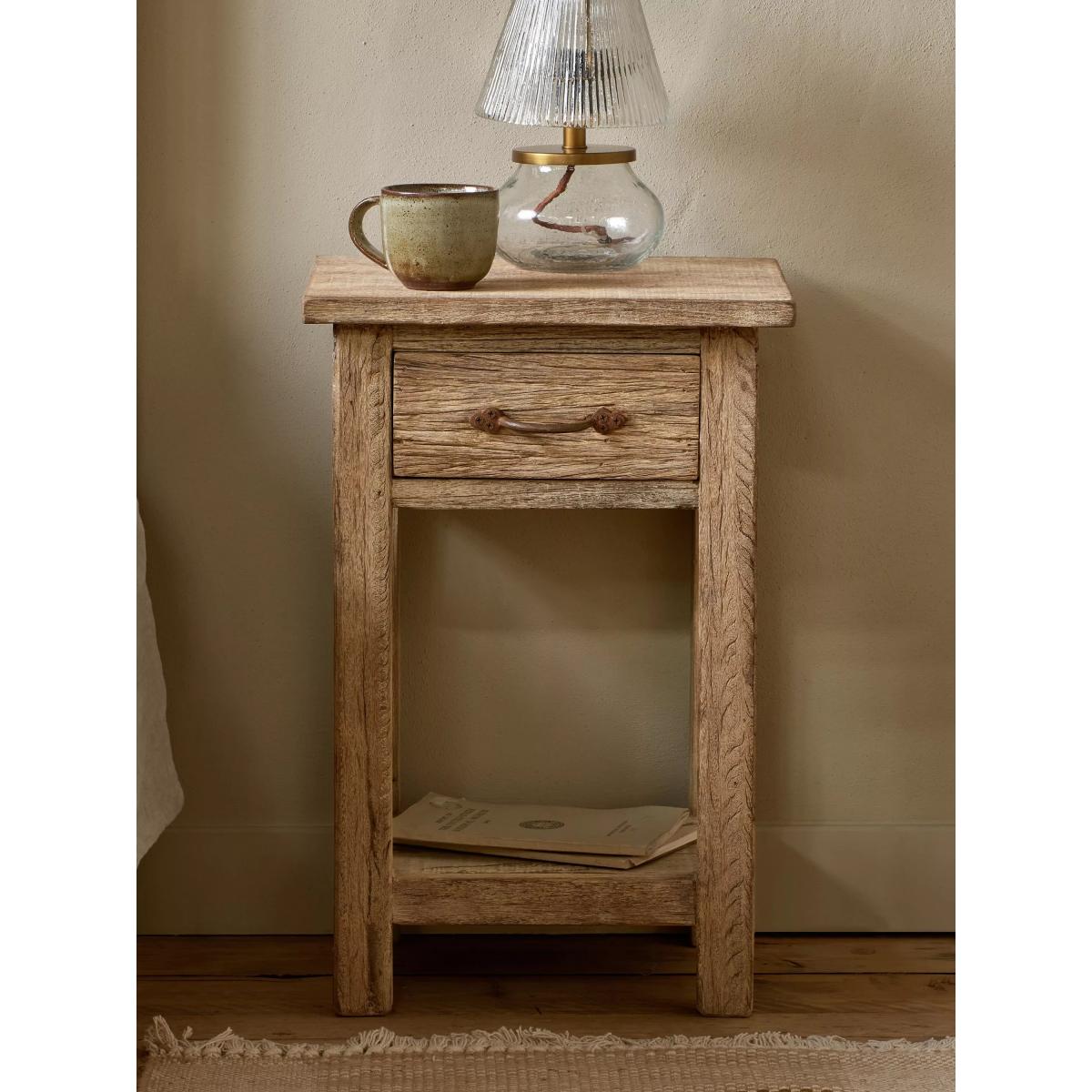 nkuku's Ibo range has a creative origin story, where the wooden panels used to make each piece of furniture has been reclaimed from Indian trucks. With its simple design, this bedside table can also be used as a side table in a living space. It's robust, with a useful drawer for storage, and its pale, natural finish looks laidback and relaxed, while adding texture to your space. Weathered tones and imperfections on each items showcases the unique variations in the tone of the wood, and its authentic rough textures, alongside knots and splits in the grain enhance its rustic charm. See me in-store It's a good idea to get a feel for new furniture before you make a purchase.
