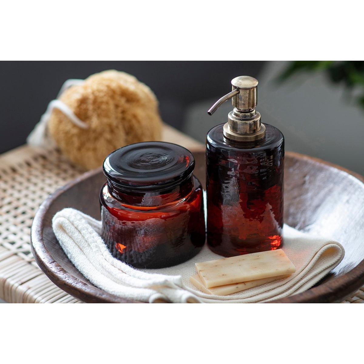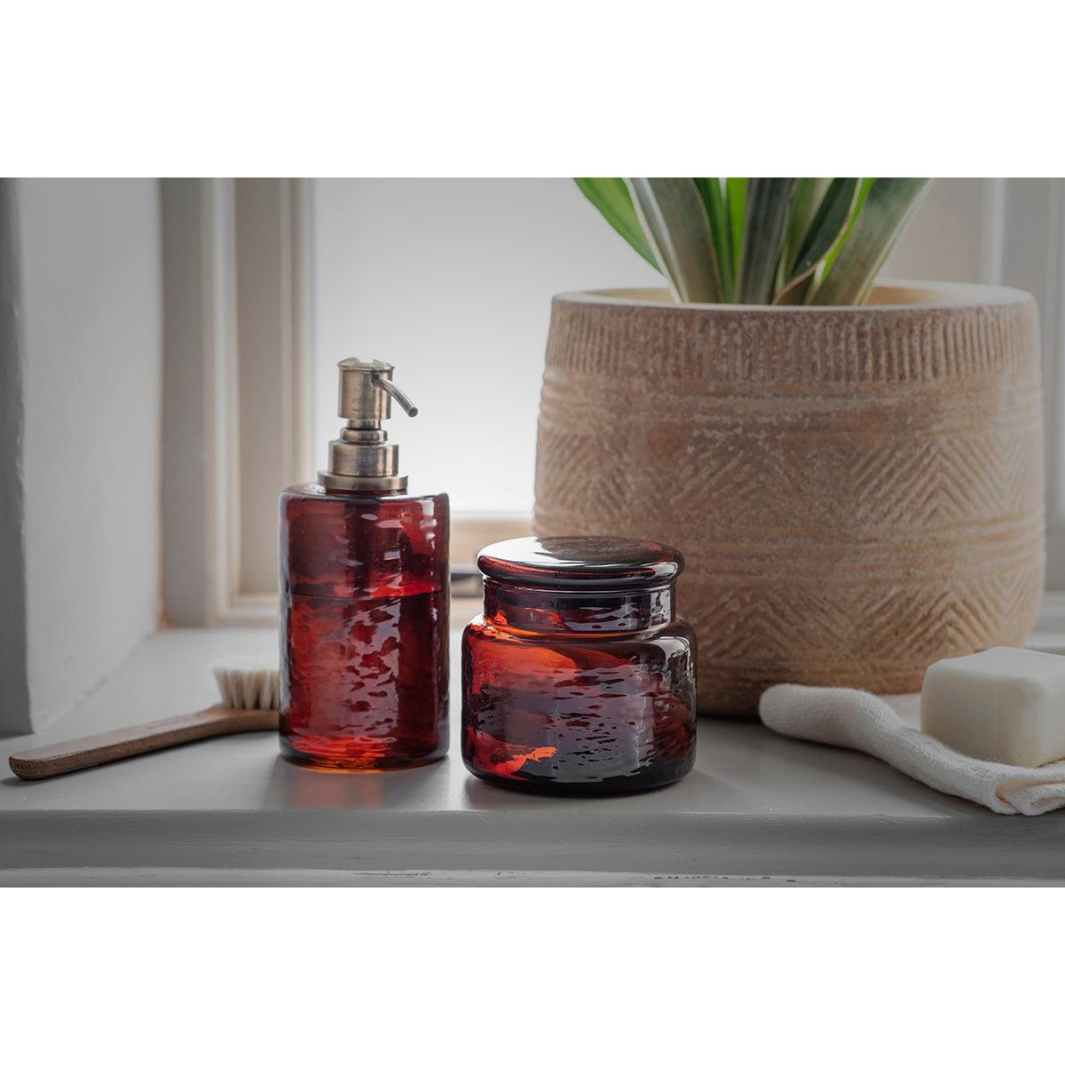 Nkuku Ilcoso Recycled Hammered Glass Soap Dispenser | Gift Jewellery & Accessories | Amber