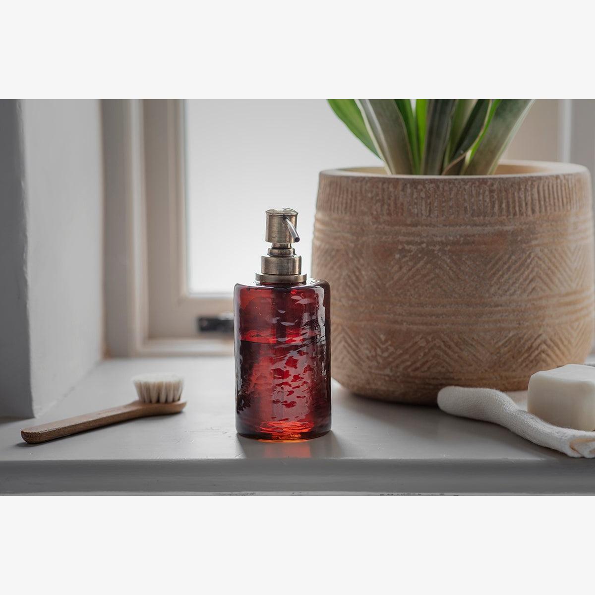 The brown glass Ilcoso soap dispenser is made from recycled glass. The rich brown tones of the glass are enhanced with the tactile hammered finish. The solid brass pump adds a touch of elegance. Well proportioned, the soap dispenser is easy to refill, and adds an attractive aesthetic to a downstairs loo or bathroom. Using refillable dispensers is one step towards supporting a more sustainable lifestyle.