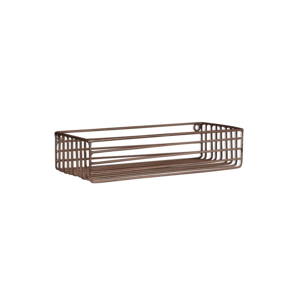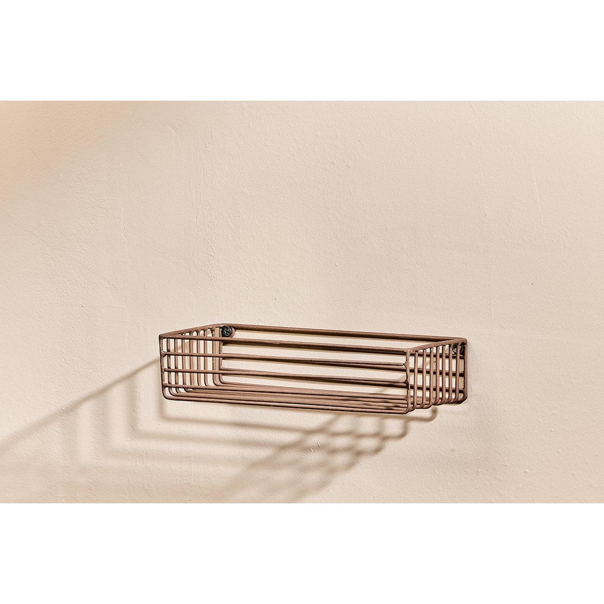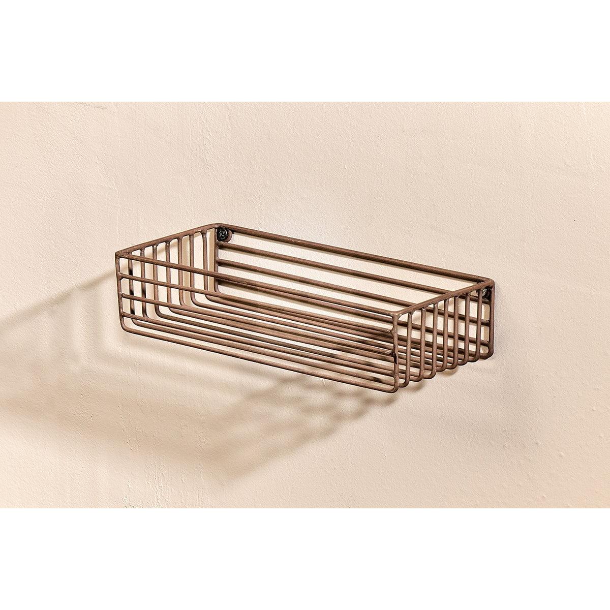 The Indore wire shelf has an industrial look. This practical shelf is designed to hold our one litre dispenser bottles along with our smaller soap dispensers. It fits neatly to a wall in clean silhouette. The iron is powder coated making it suitable for a bathroom or shower and has an aged brass tone.