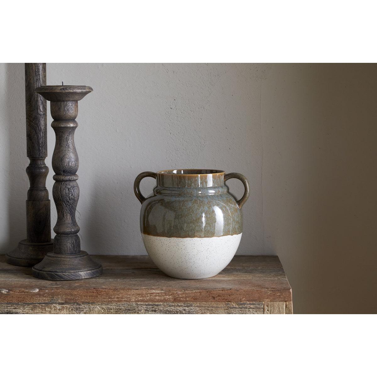 nkuku Inha Reactive Glaze Vase | Vases & Planters | Dark Olive/Natural