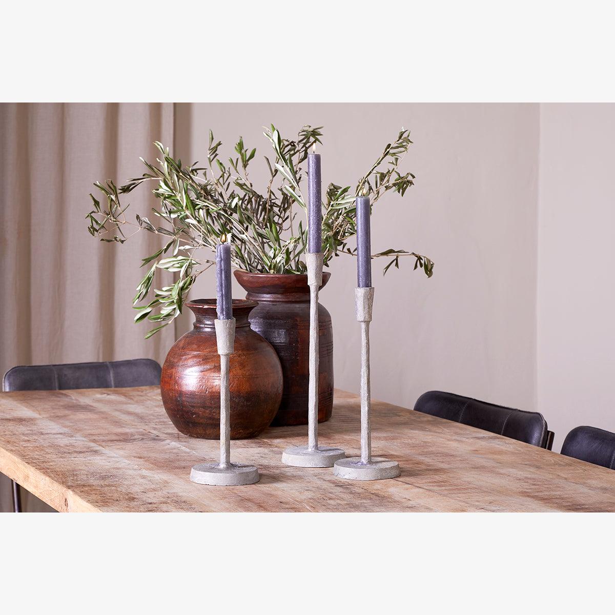 Our Inigo Candle Holders are hand-forged from iron and finished with a unique aged zinc coating, adding a soft, rustic charm. Delicate design details lend a subtle, distinctive touch, making these holders as elegant as they are practical. Available in three sizes, they’re perfect for curating a stylish vignette when mixed and matched. Pair with our rustic soy blend.