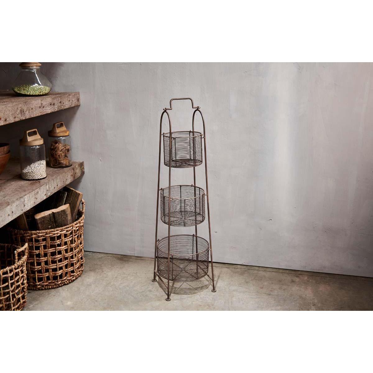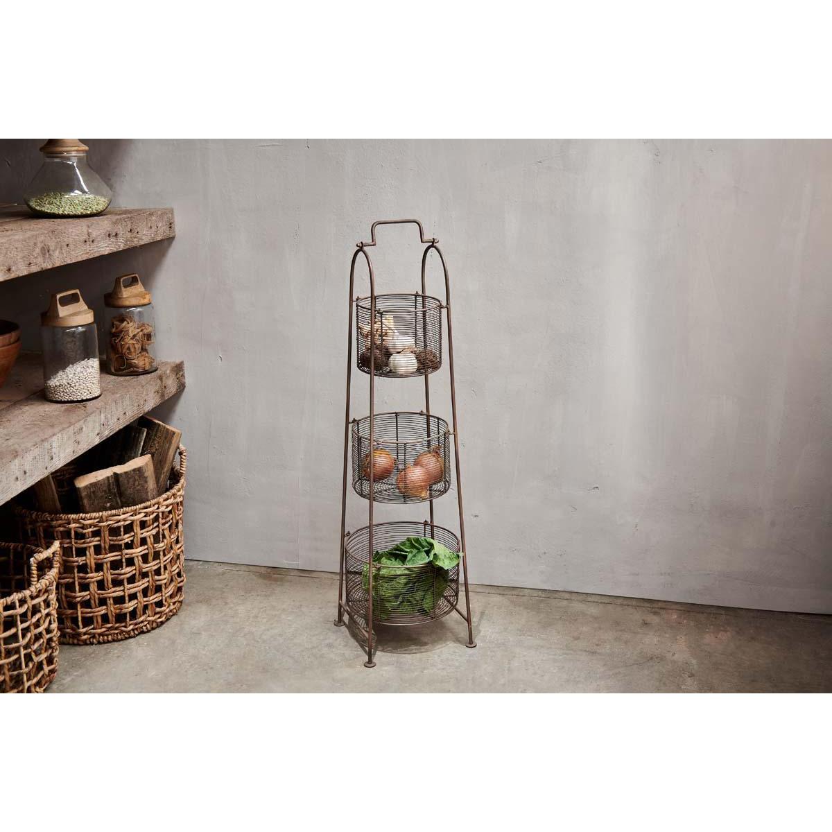 The warm tones of our aged brass Inkollu Three-Tiered Storage Stand is a stylish standalone piece, perfect for storing fruit & vegetables and other food items. Style in a kitchen or larder. | nkuku Inkollu Three | Kitchen Storage & Utility | Aged Brass