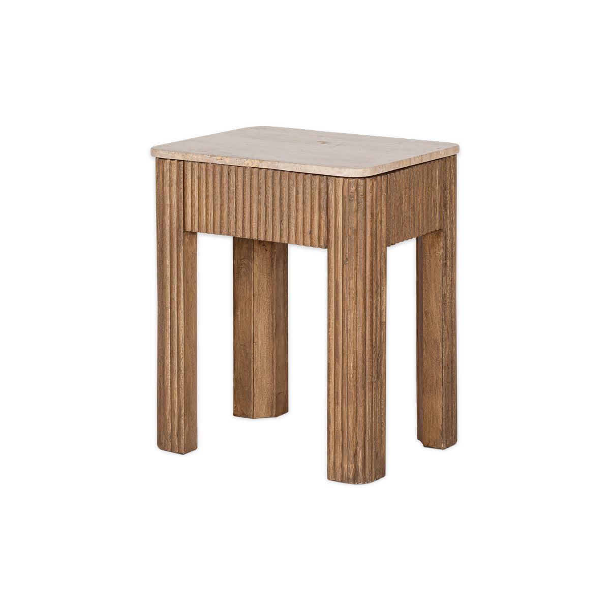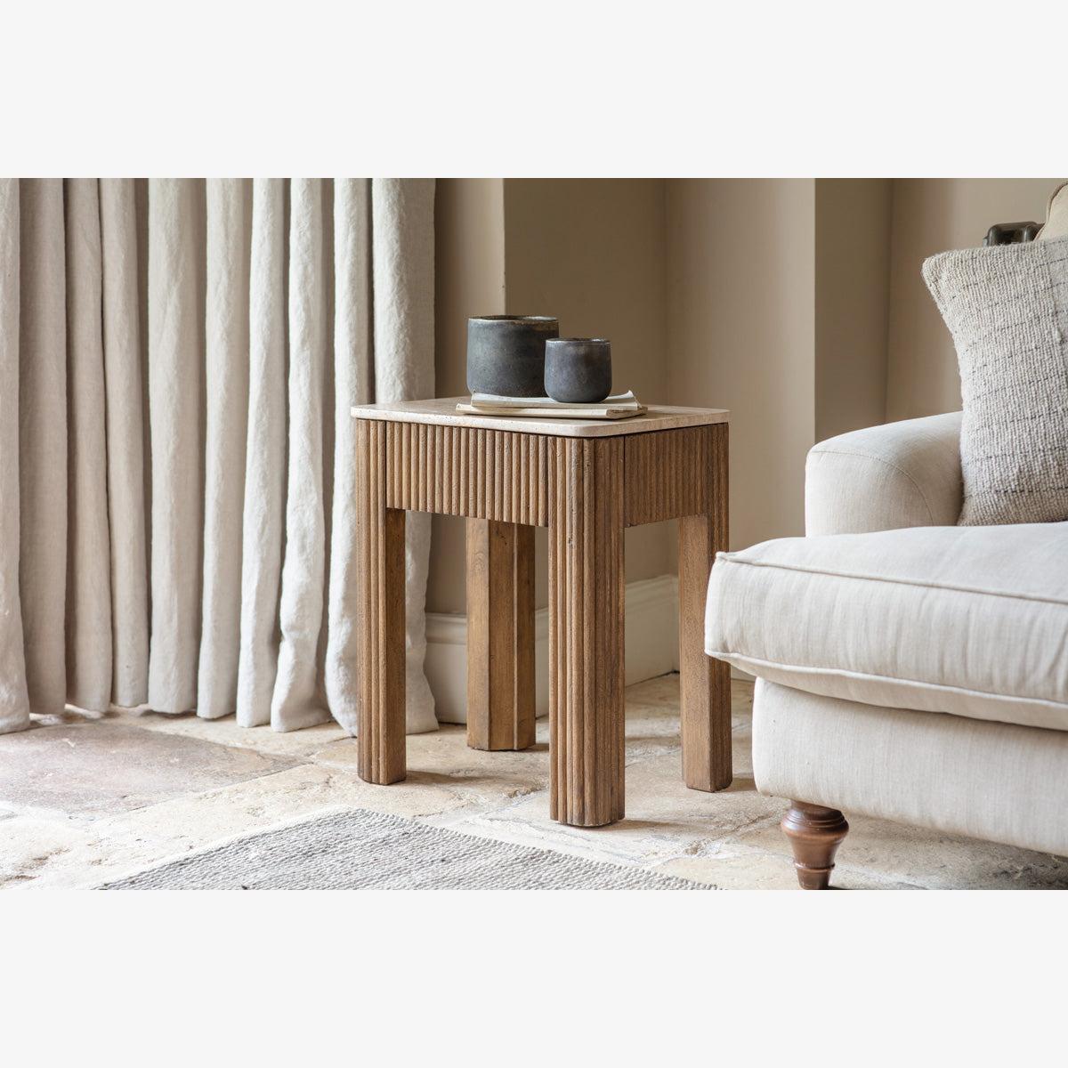 nkuku Ira Travertine & Mango Wood Side Table | Tables | Natural
