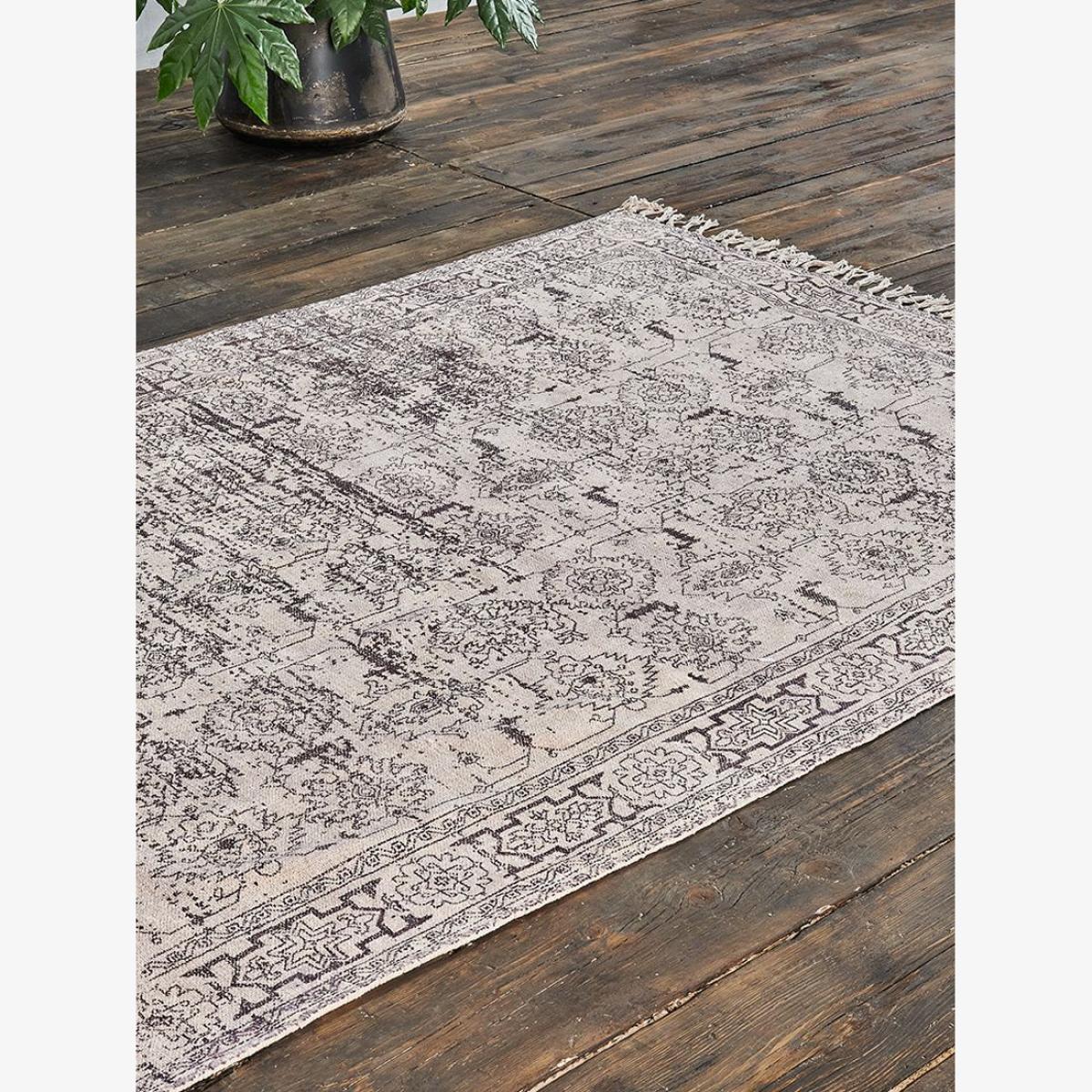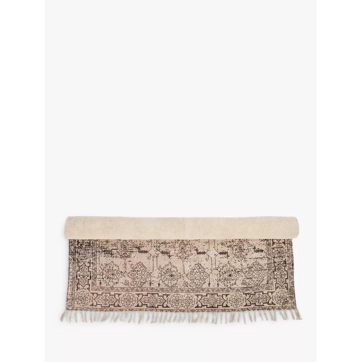 Understated and sophisticated, the aged-look of this stunning Iria rug has an antique looking print. The off-black tones lay softly over a natural colour base. Handwoven on traditional handlooms in India by talented artisans. With a flat finish making this rug ideal for busy, high-traffic rooms, the materials in this rug have been woven together by hand to create a strong construction. About your new rug We recommend John Lewis & Partners Rug Hold Underlay. It prevents your rug from moving underfoot and protects against colour transfer to the floor Vacuum occasionally. When vacuuming your rug, use suction only. Rotating brushes may damage your rug Blot any spills with a clean, dry cloth. Do not rub. Spot clean using a mild soap solution Textile backed Specialist cleaning recommended
