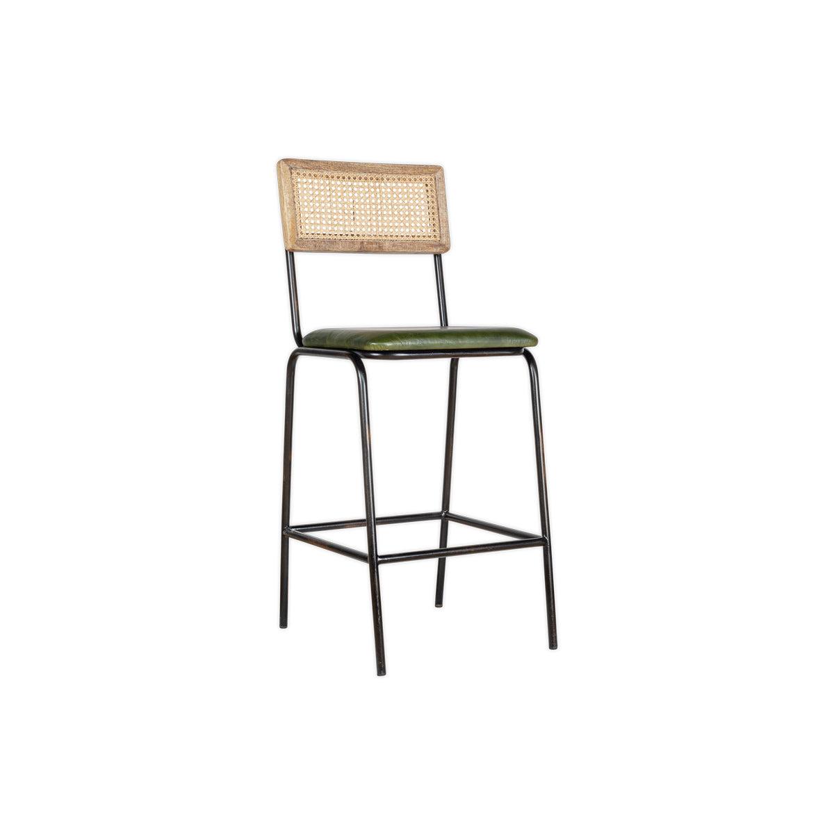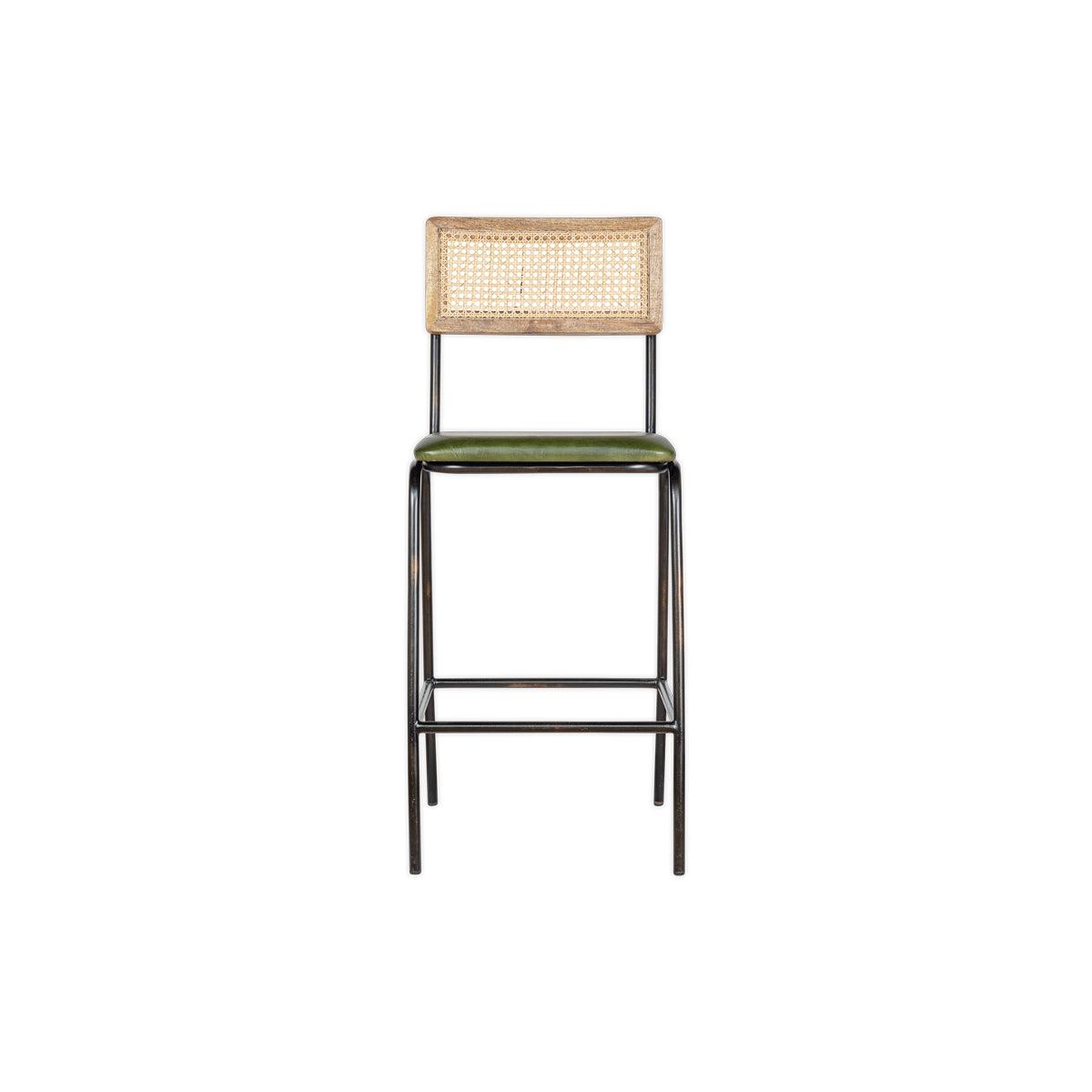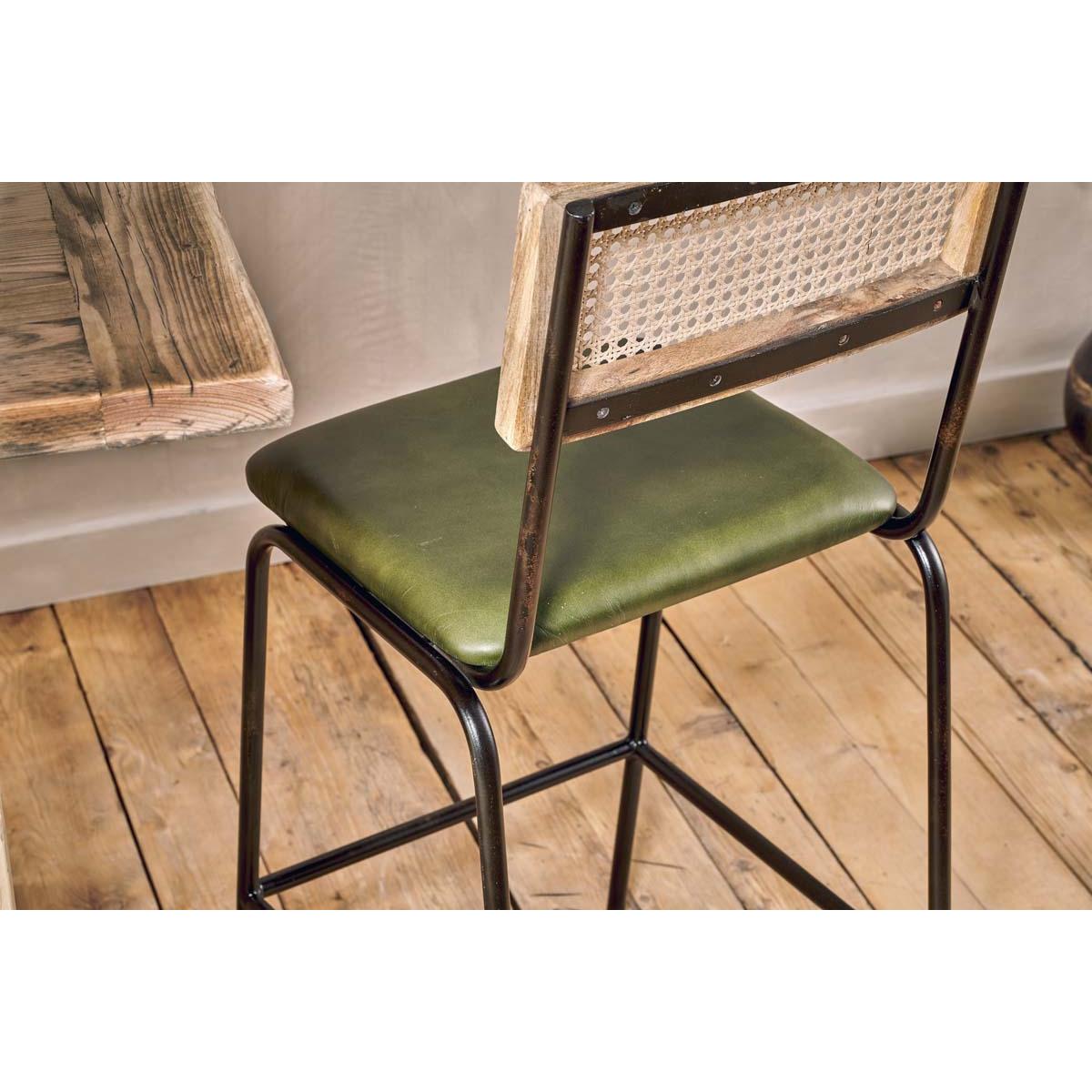 nkuku Iswa Leather & Cane Counter Dining Chair | Seating | Rich Green