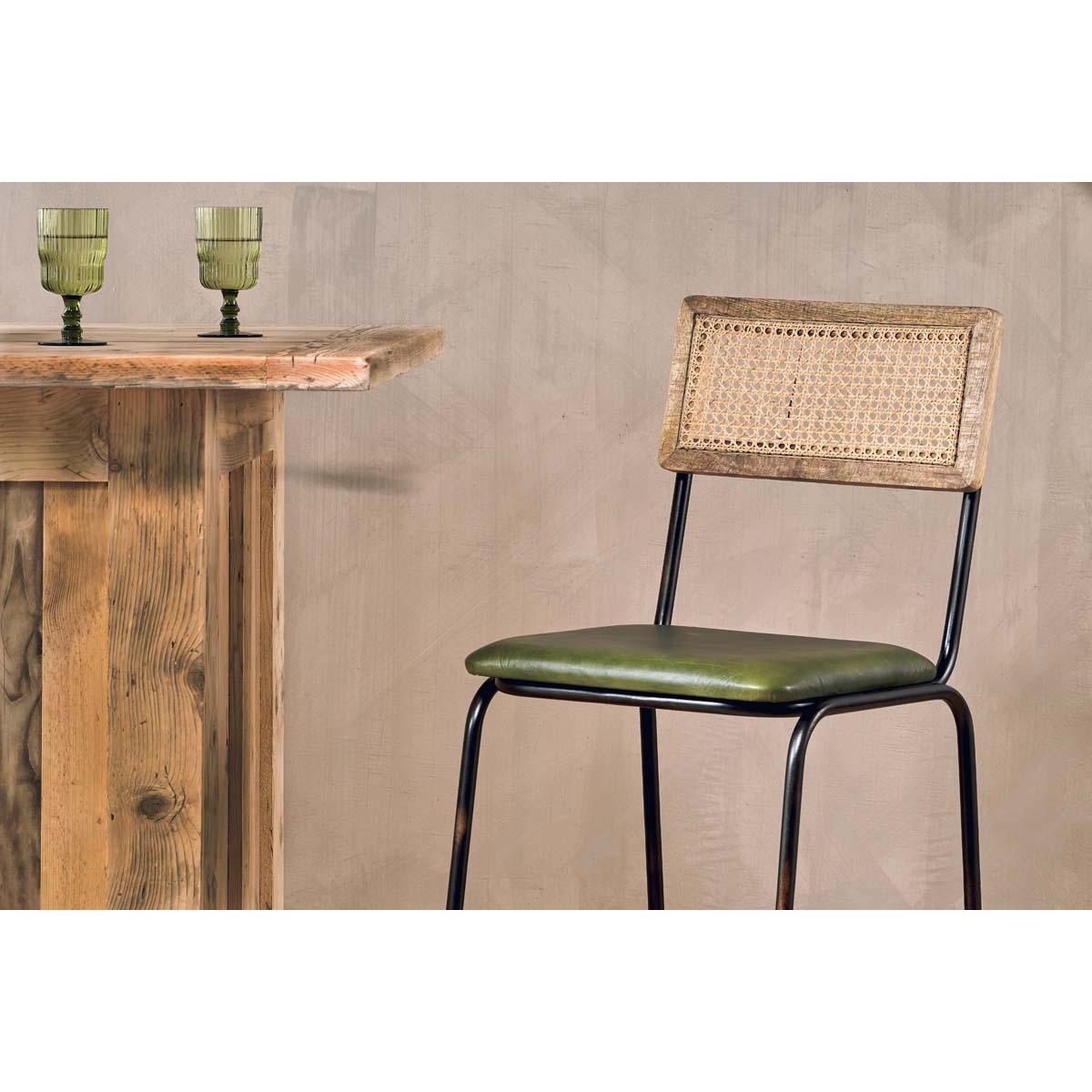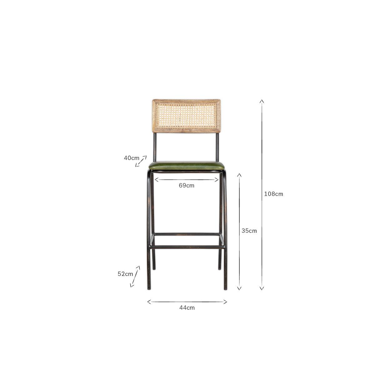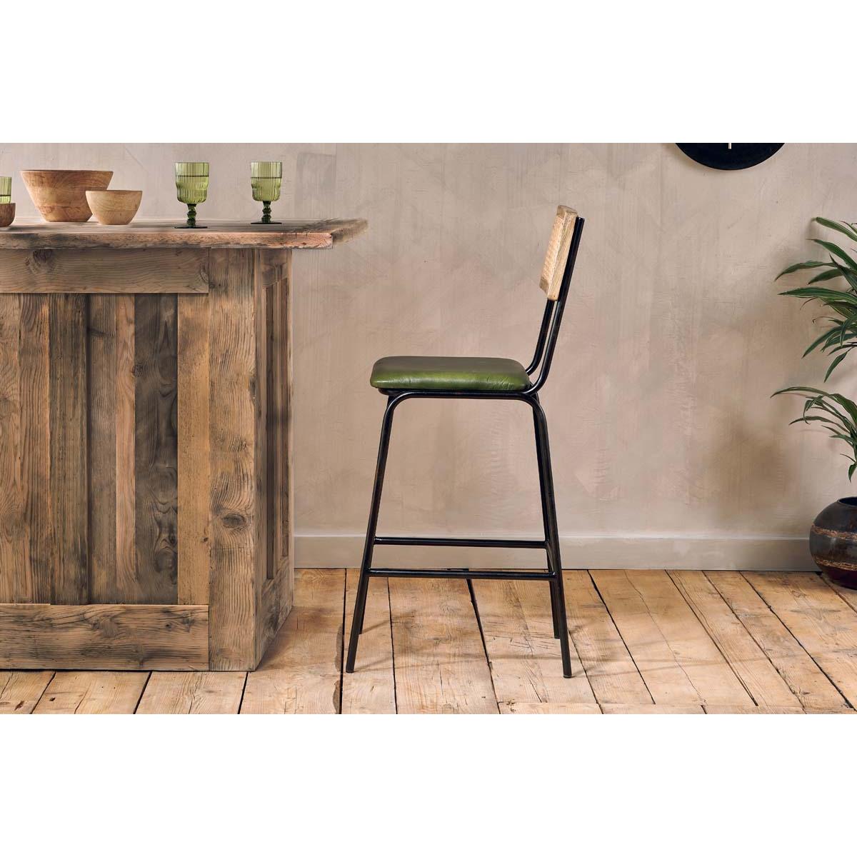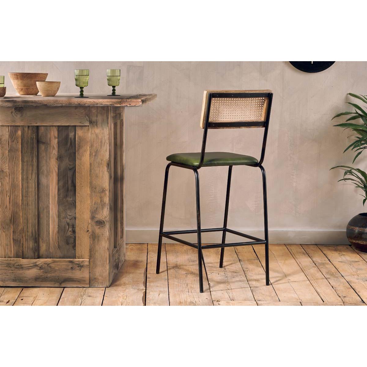 nkuku Iswa Leather & Cane Counter Dining Chair | Seating | Rich Green