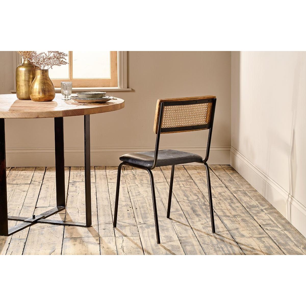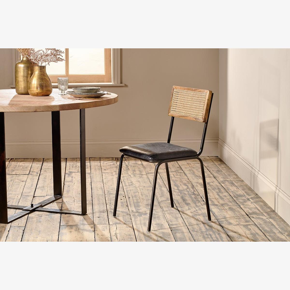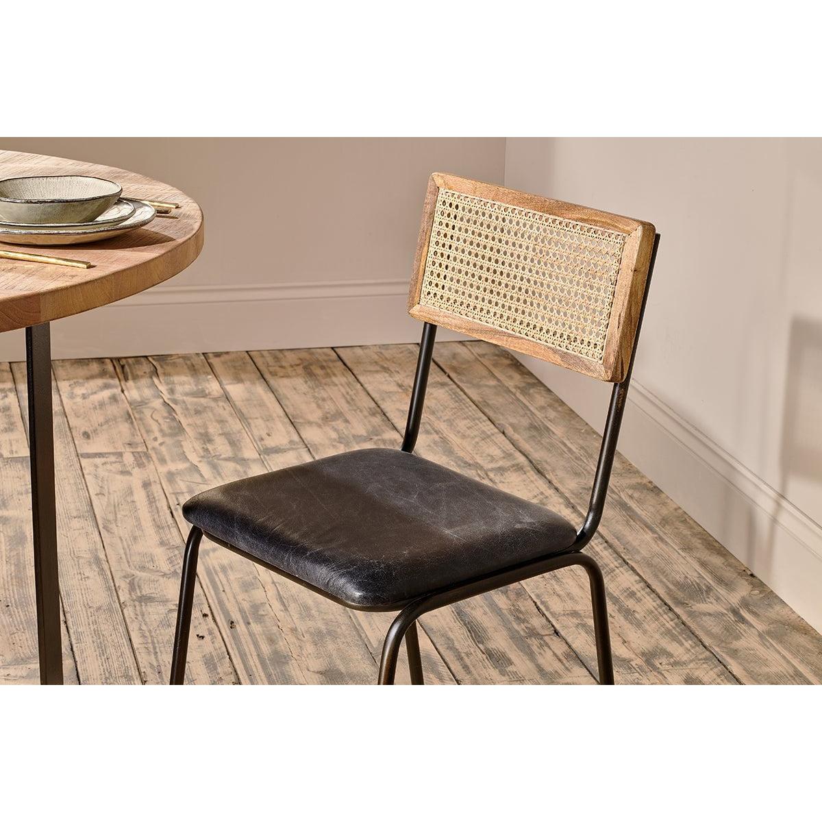 Nkuku Iswa Leather & Cane Dining Chair | Chairs Stools & Benches | Black
