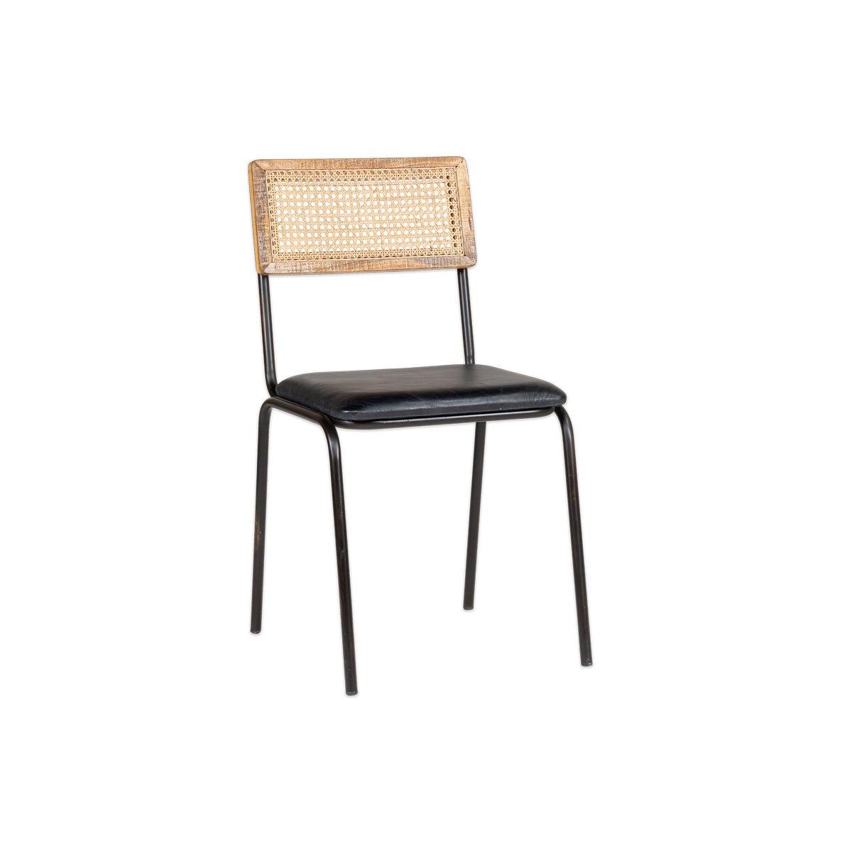 The Iswa leather and cane dining chair combines a contemporary design with the soft tactility of black goat leather. The light airy look of the natural cane back has been skilfully woven using traditional methods. The cane is surrounded by a solid mango wood frame, offering a comfortable and firm back support. The Iswa chair ensures a stylish and comfortable dining experience, and it can also work well in an office environment.