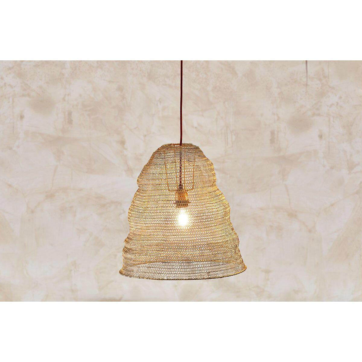 This Jatani brass wire shade offers a versatile yet distinct touch, perfect for adding texture and warmth to a variety of interiors. I love how its antique brass finish brings a subtle vintage feel, making it ideal for both classic and eclectic schemes. It works especially well in bohemian, rustic, or industrial spaces, where its handcrafted look adds authenticity. For styling, consider pairing it with a minimalist bulb to highlight its wire detail or hanging it over a dining table or a statement corner to create a cosy, inviting atmosphere. Its neutral metallic tone makes it easy to coordinate across colour palettes, making it a smart choice for adding character without overpowering the room.