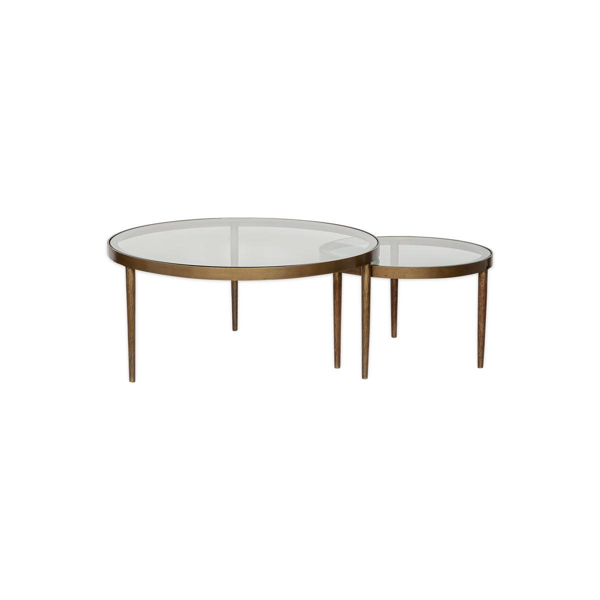 nkuku Jiya Iron & Glass Nested Coffee Tables Set Of 2 | Tables | Brass | ()