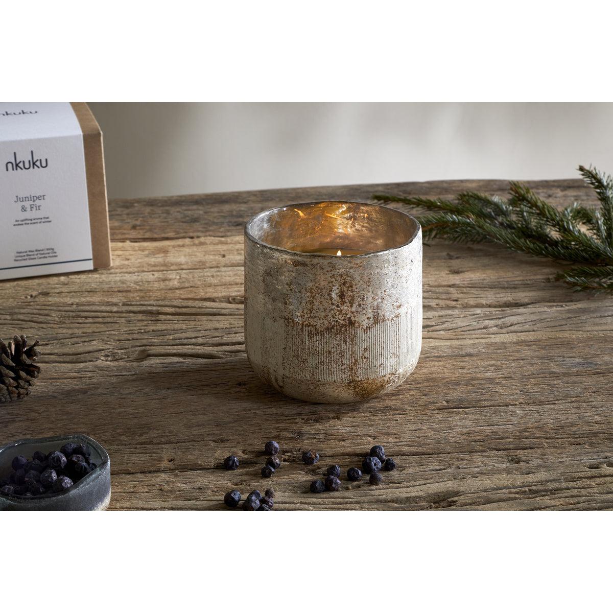 Made in the UK by a family-run business, this scented candle features a bespoke fragrance developed exclusively for Nkuku. Woody notes of eucalyptus and fir, spiced juniper and black pepper are expertly blended to evoke the scent of winter. The vessel is finished in one of Nkuku's iconic textured styles and intended to be reused once the candle has burned through.