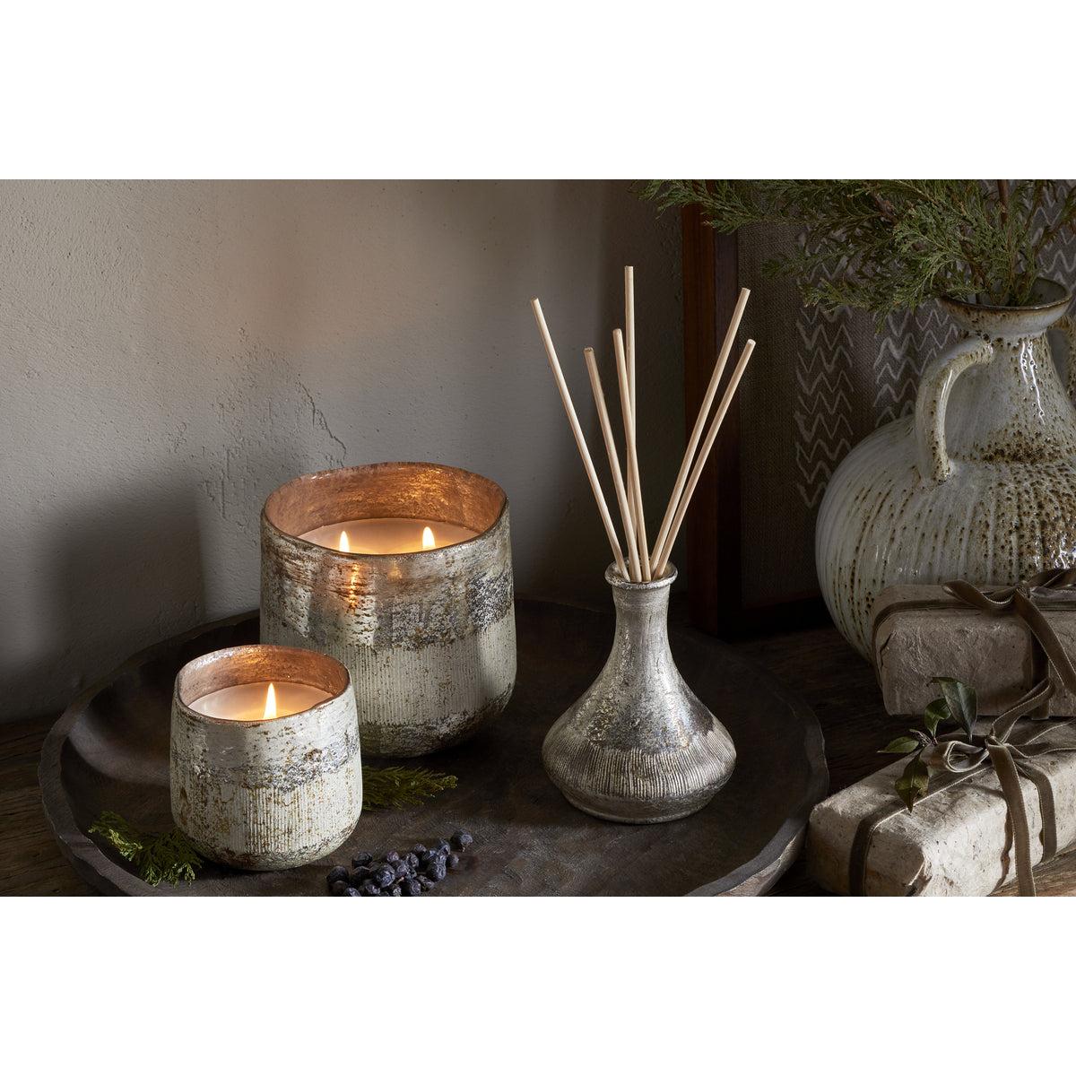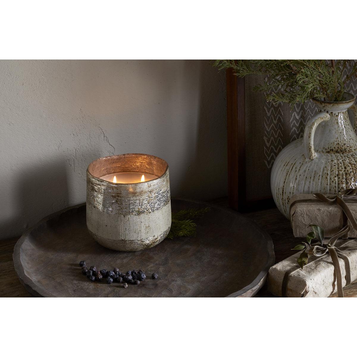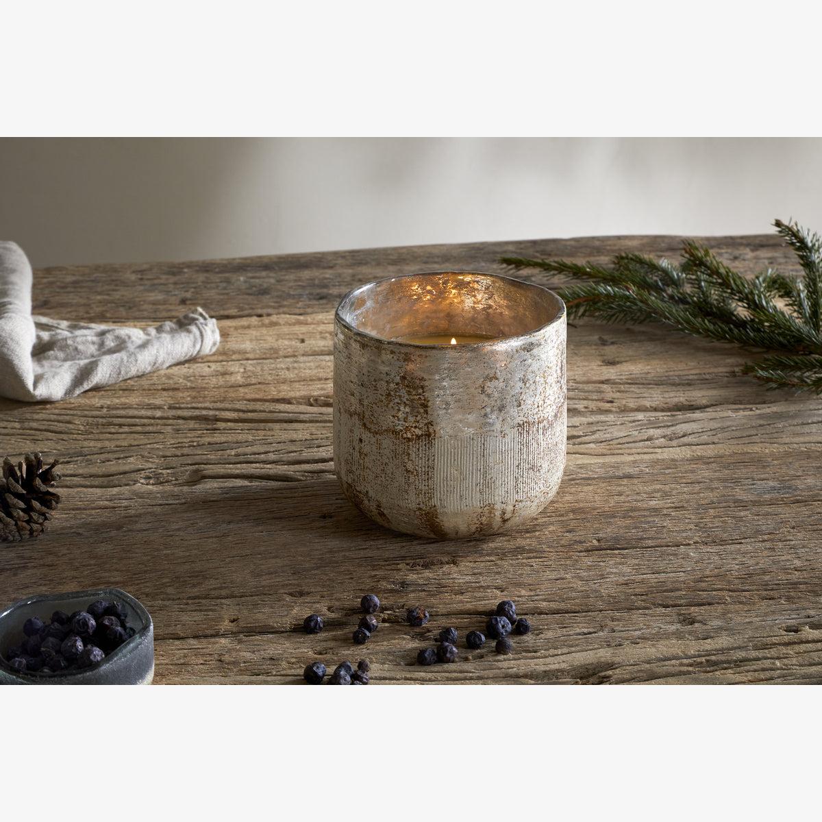 This candle, often called the Juniper & Fir, is a versatile piece that works well in both contemporary and rustic interiors thanks to its antique gold finish and earthy scent profile. I love how it adds a touch of understated luxury while remaining approachable - perfect for styling on a wooden coffee table or bookshelf. For practical tips, position it alongside natural textures like linen or wood accents to enhance its organic vibe, and consider pairing it with other botanically inspired decor for a cohesive look. Its warm glow and fragrant aroma make it ideal for creating inviting spaces in living rooms or cosy corners, especially during colder months.