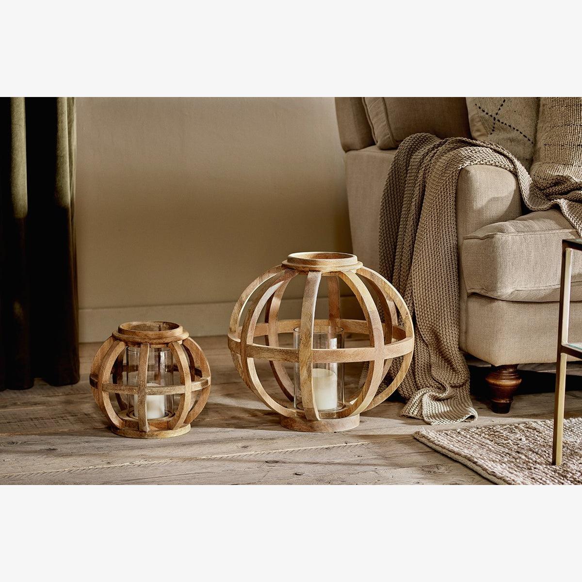 Nkuku Kabu Mango Wood Lantern | Candles Holders & Lanterns | Natural | Small