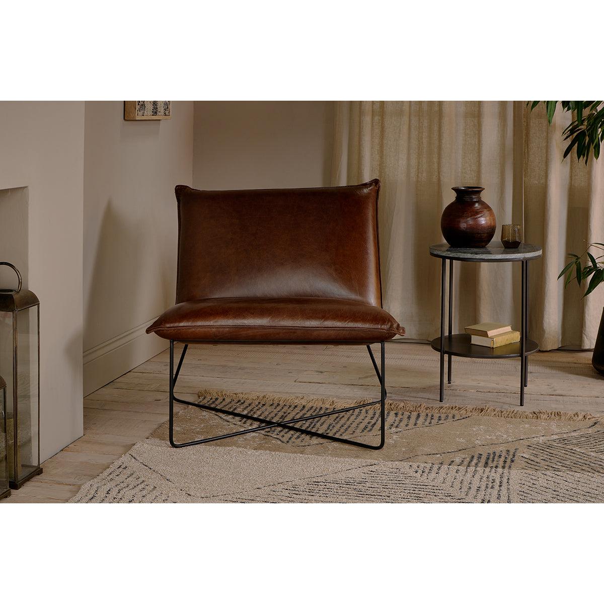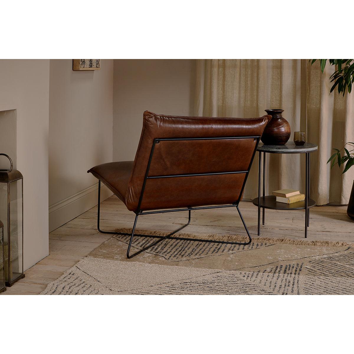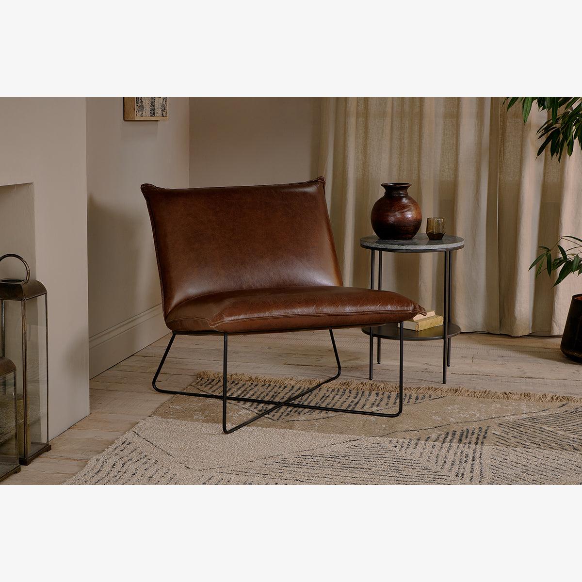 I love this piece because it combines the luxe feel of oversized leather with a modern, minimalist silhouette, making it highly versatile. It works particularly well in both contemporary and boho-inspired interiors, adding warmth and character to a living room or reading nook. For styling, consider pairing it with textured cushions or a chunky throw in neutral or earthy tones to soften the look. It also functions beautifully as a statement piece in a pared-back space, while its practical size makes it perfect for small or cozy rooms. To keep it looking its best, avoid placing it directly in harsh sunlight, and opt for simple, understated furniture around it to let the lounger be the star.