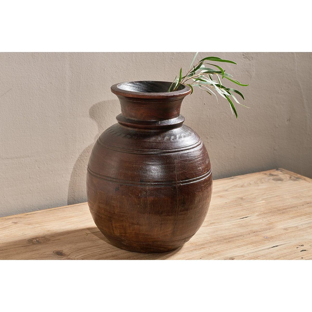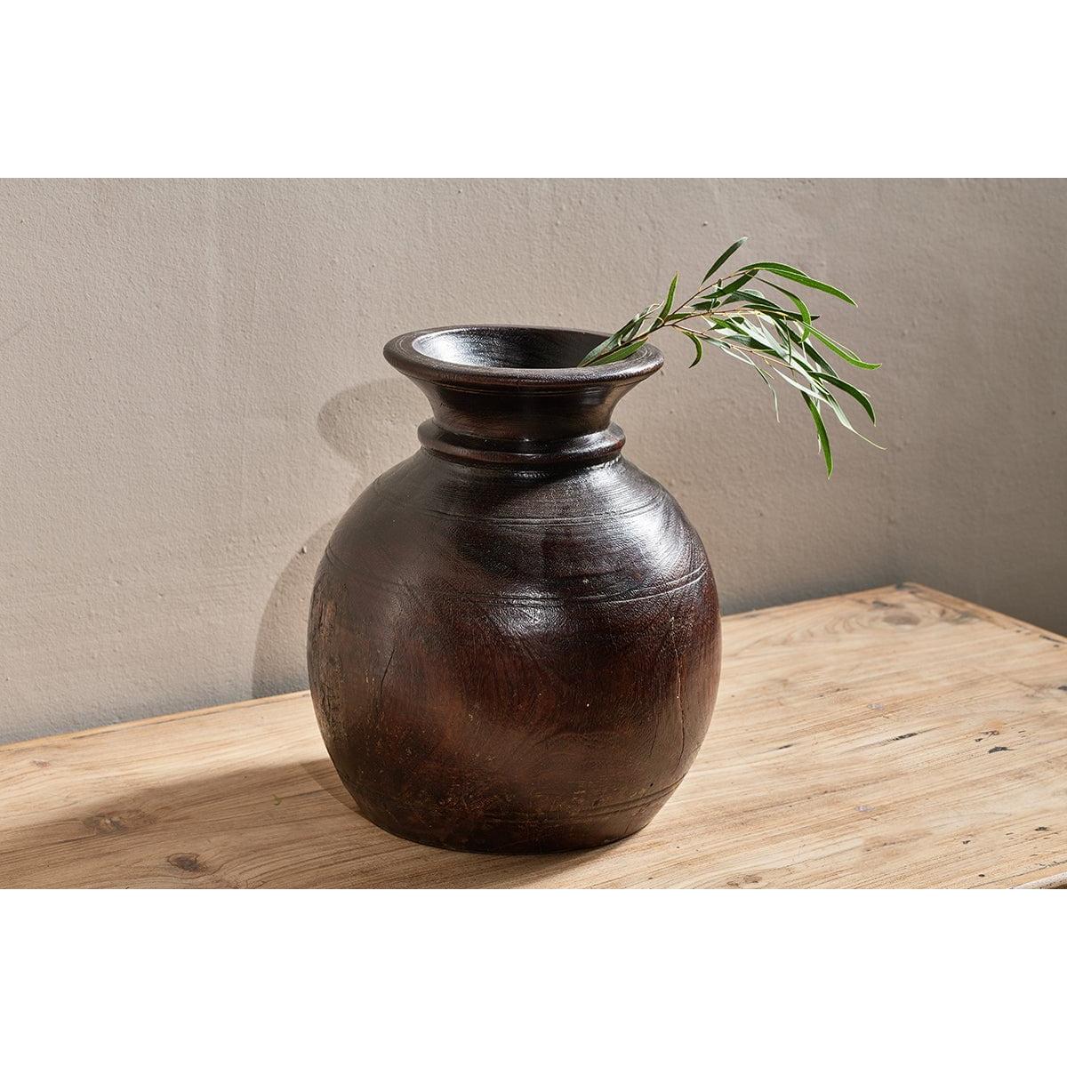 Nkuku Kiaan Reclaimed Traditional Wide Pot | Gift Jewellery & Accessories | Dark Stain