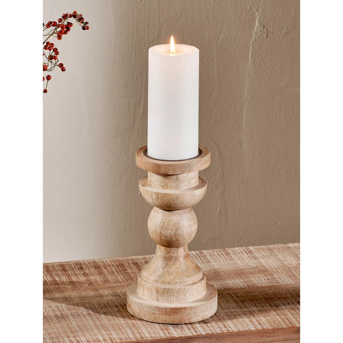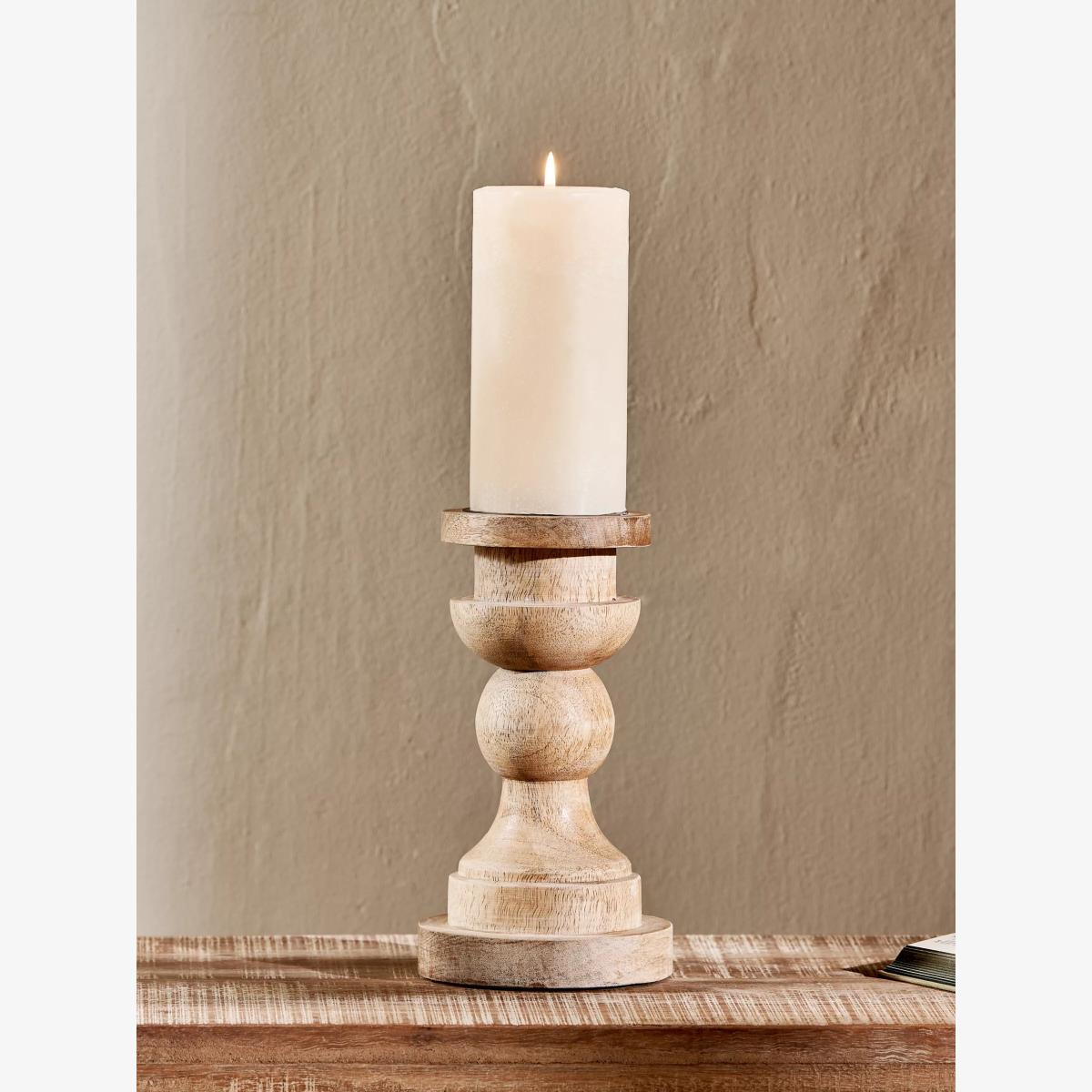 Nkuku's Kibbi candlesticks are a firm favourite. These chunky, sturdy candlesticks will look beautiful featured on your mantelpiece or window-sill. Handmade in India by artisans using traditional tools and techniques, the mango wood used to make Nkuku's wooden pieces come from mango trees that have stopped bearing fruit. This allows the farmers to plant more trees and provides them with a supplementary income.