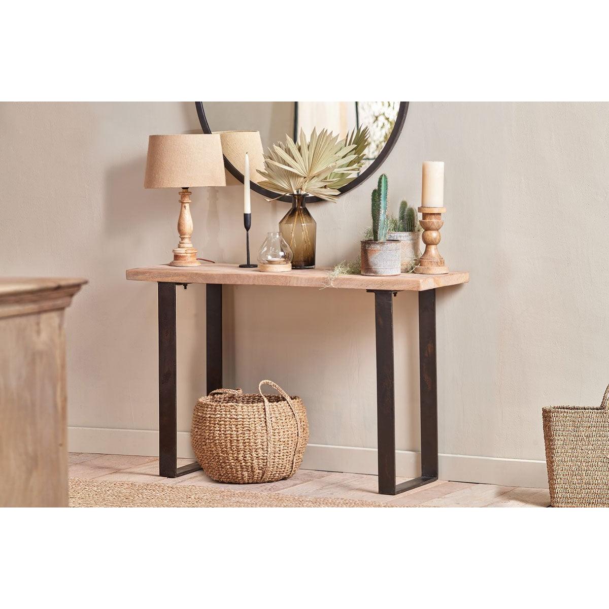 I love the Nkuku Kiri Mango Wood console table for its natural warmth and versatile design. Its combination of mango wood and black metal legs makes it suitable for a variety of interiors, from boho and rustic to modern and industrial styles. It works particularly well as an entryway piece or behind a sofa, where you can style it with decorative items like plants, candles, or trays for added visual interest. Practical styling tips include keeping accessories minimal to highlight the natural wood grain, and pairing it with contrasting textures-think woven baskets or ceramics-to create a curated, cohesive look. Its understated elegance makes it a functional yet stylish addition to any room.
