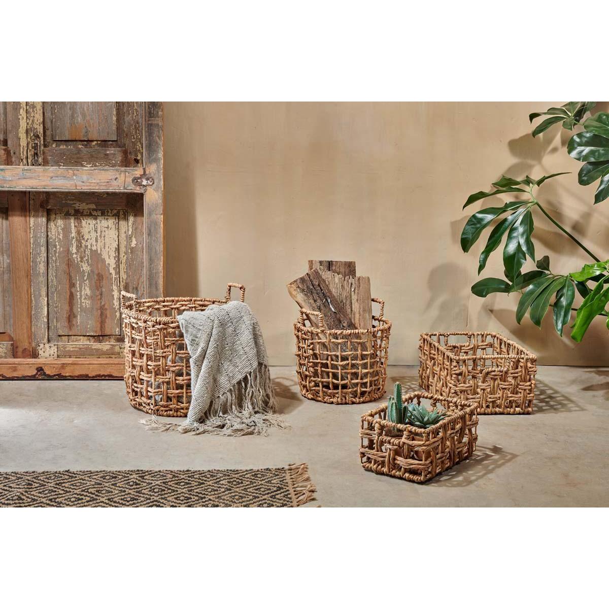 Handmade from water hyacinth, our Kora Storage Baskets have an appealing natural finish. Suitable for all types of storage from laundry and shoes to kindling and log. They have a practical raised handle that also adds to style of the basket.