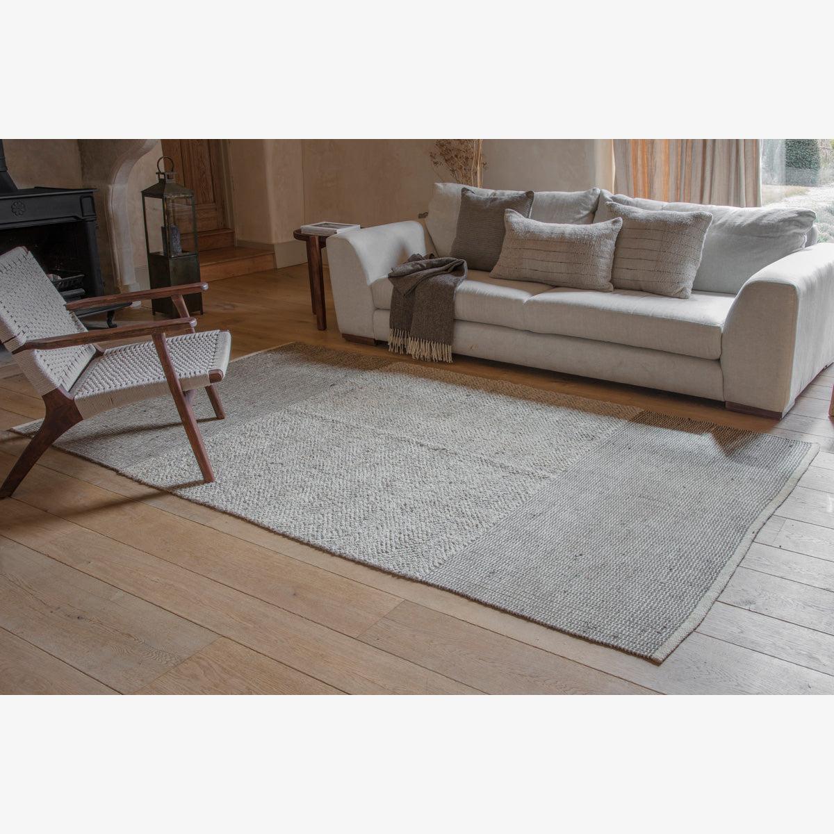 I love the kufri jute rug for its natural texture and muted, soft blue and brown tones, making it versatile for various interiors. It works particularly well in cosy living rooms or neutral schemes where it can add a subtle layer of warmth and contrast without overwhelming the space. Pair it with light wood furniture or pastel-coloured soft furnishings for a relaxed, understated look. Practical styling tips include layering with throws and cushions in complementary shades to enhance the relaxed feel, and placing it under a coffee table or seating area to define the space while keeping a calm, natural aesthetic. Its size makes it flexible for larger living rooms, creating an inviting and grounded environment.