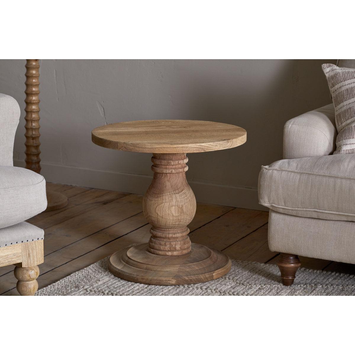 nkuku Laya Round Carved Side Table | Tables | Natural