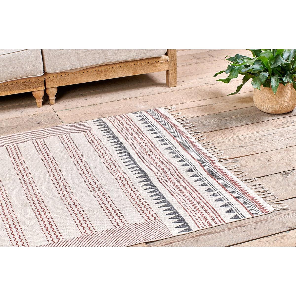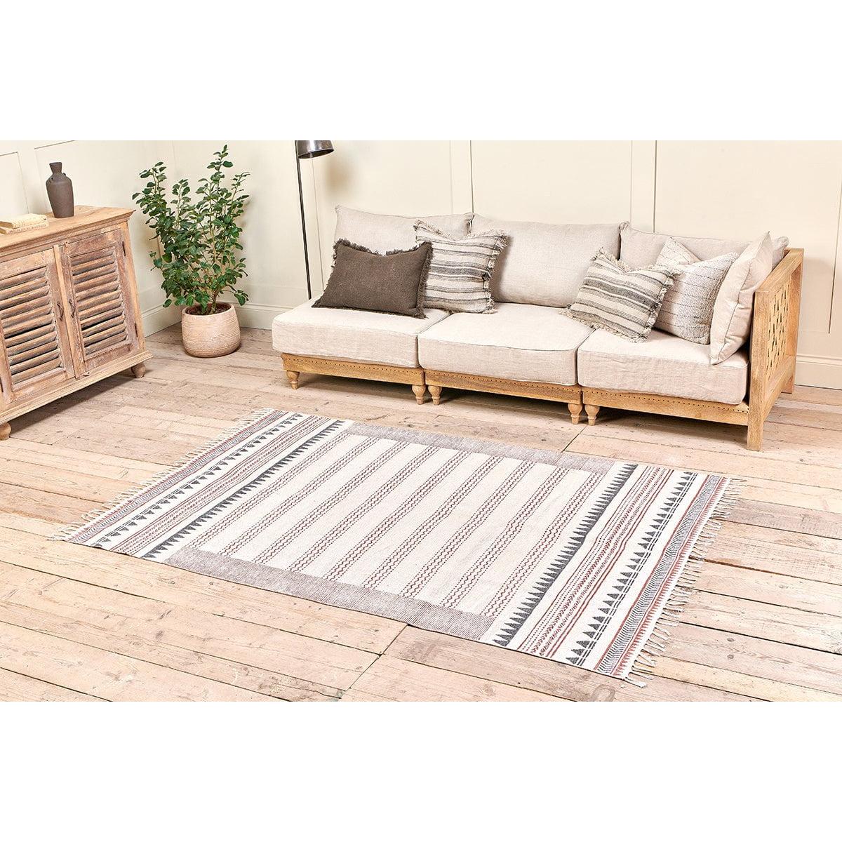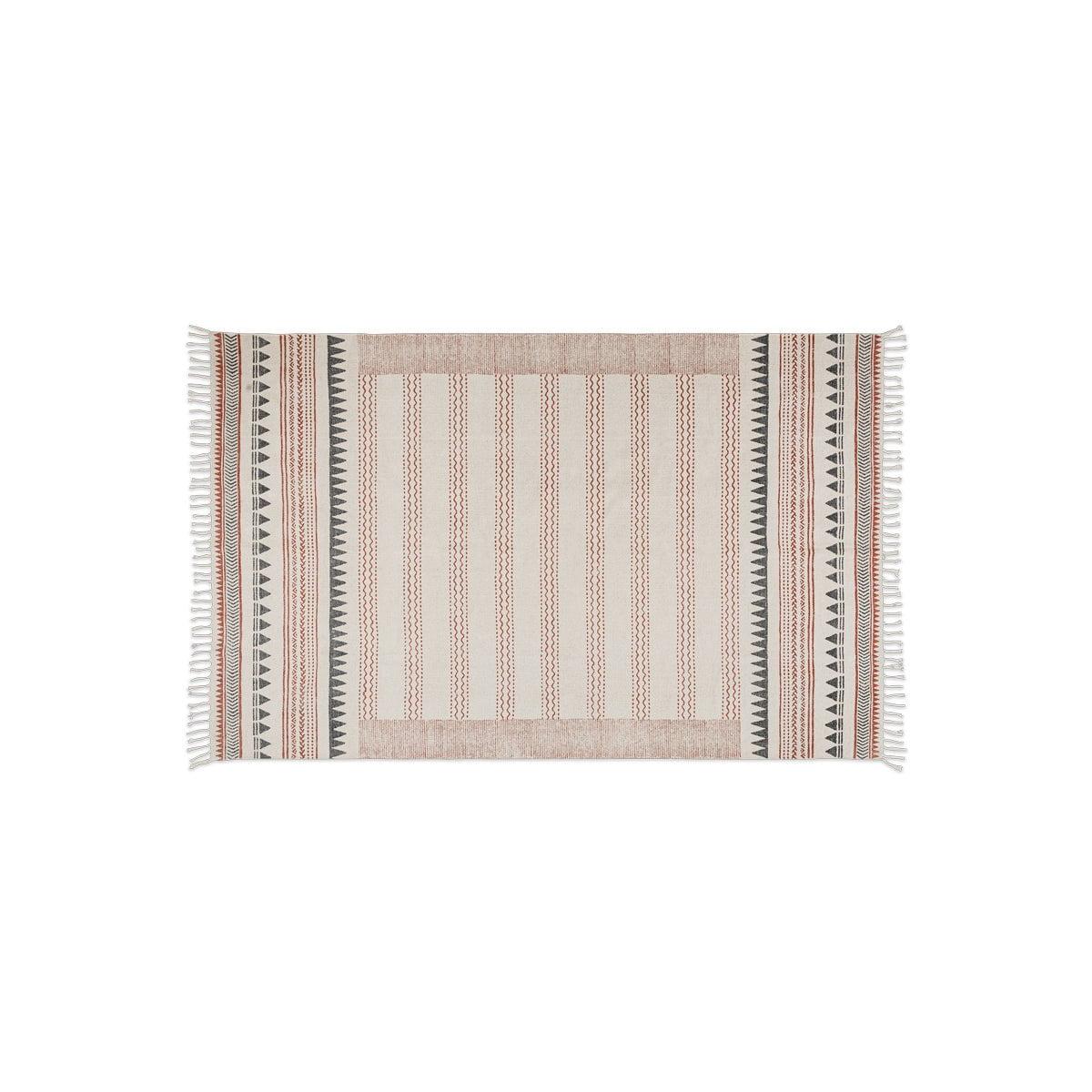 Nkuku Leodi Cotton Block Printed Rug | Rugs | Rust/Charcoal | 120X180 cm