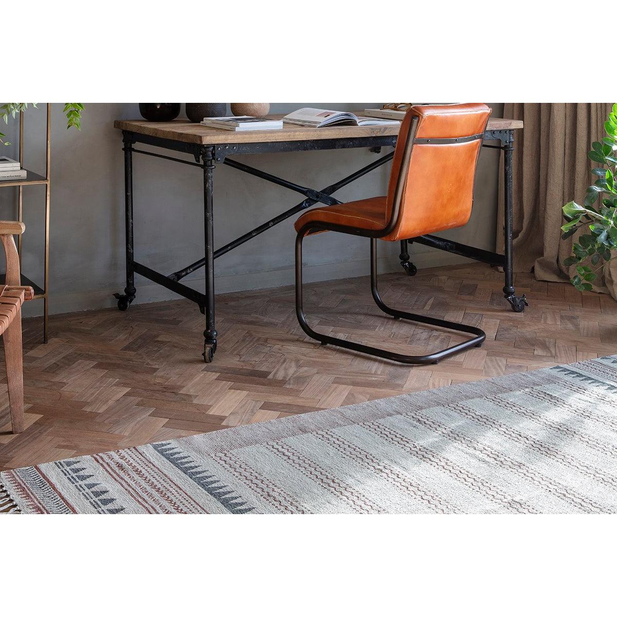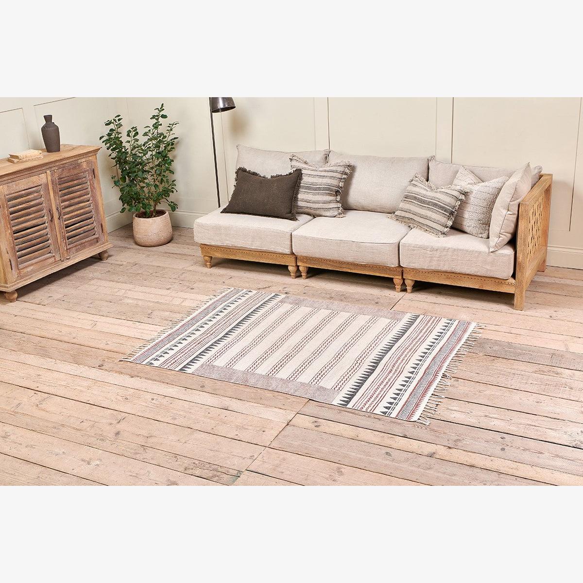 Block printing is synonymous with Rajasthan and this age old tradition is centuries old. The Leodi cotton block printed rug celebrates this timeless technique but adds a modern twist. The geometric shapes are printed in appealing warm and earthy tones in an attractive display. The Leodi cotton rug is the perfect rug for bringing warmth and light to an interior.
