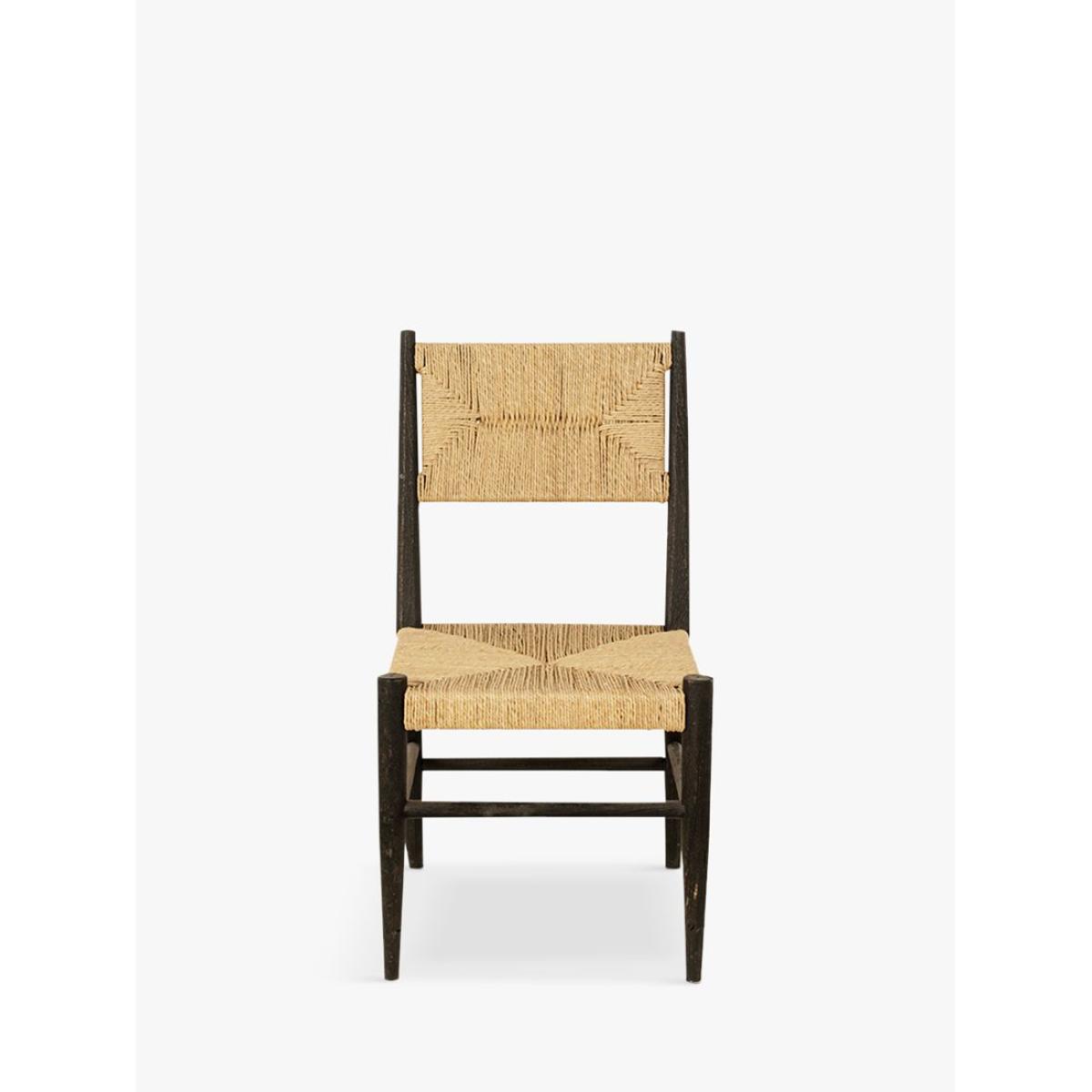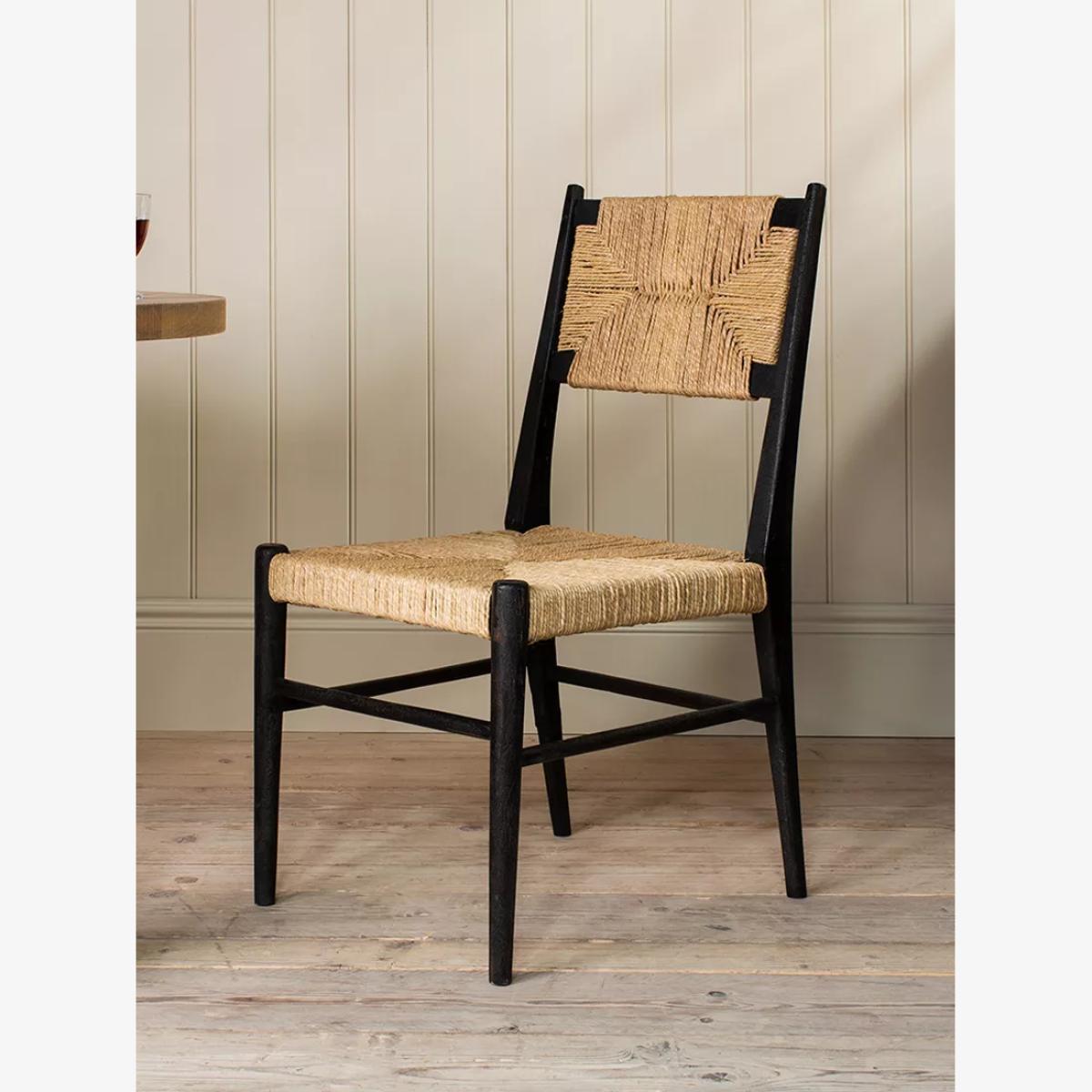 Nkuku's Lohanda dining chairs are made from robust acacia wood, with a munja grass seat and back that is expertly woven by artisans, creating a comfortable, stylish addition to your dining room or kitchen. The natural tones of the munja grass stand out beautifully against the black finish of the wooden frame. Both acacia wood and munja grass are sustainable materials which have a minimal environmental impact. To care for your wood wash in warm soapy water, rinse and dry immediately. Owing to the natural beauty of these items, there may be changes to the colour over time. To nourish and protect the natural wood rub an edible oil such as olive oil or walnut oil into the surface with a dry cloth.