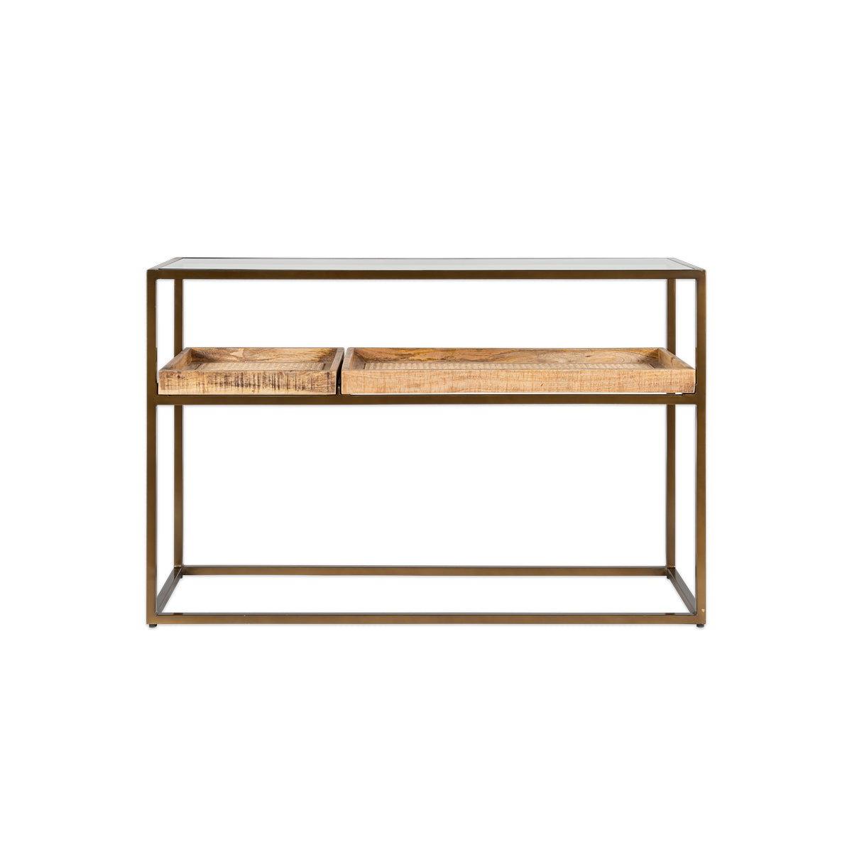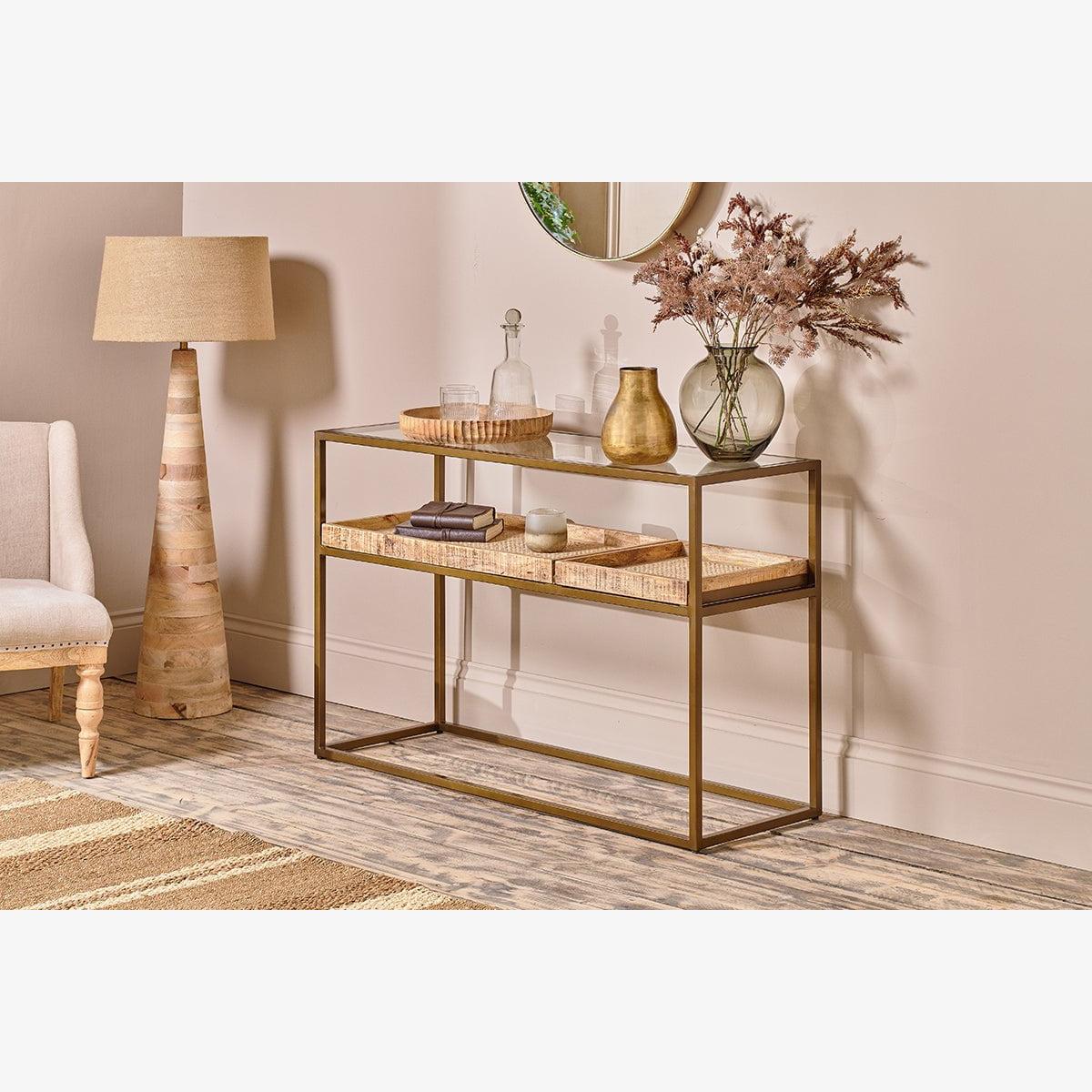 Nkuku Luzon Iron & Mango Wood Display Console Table | Tables | Brass
