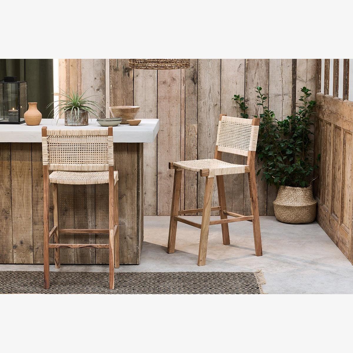 Nkuku Madrisana Acacia & Rattan Bar Stool | Chairs Stools & Benches | Natural
