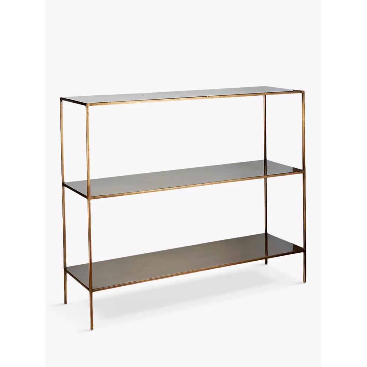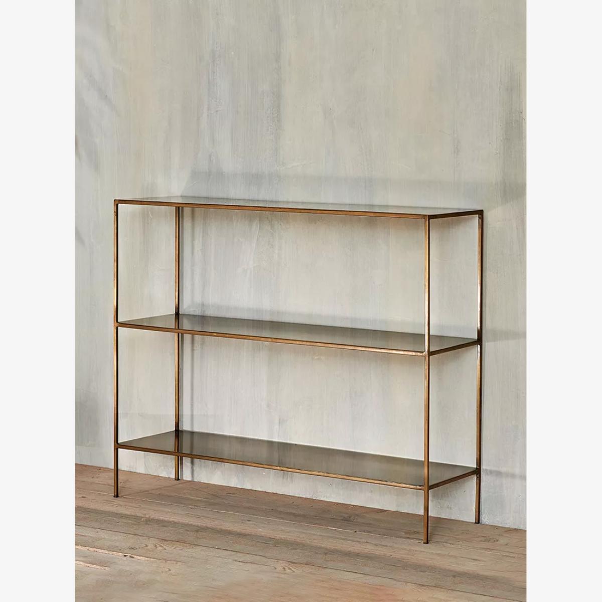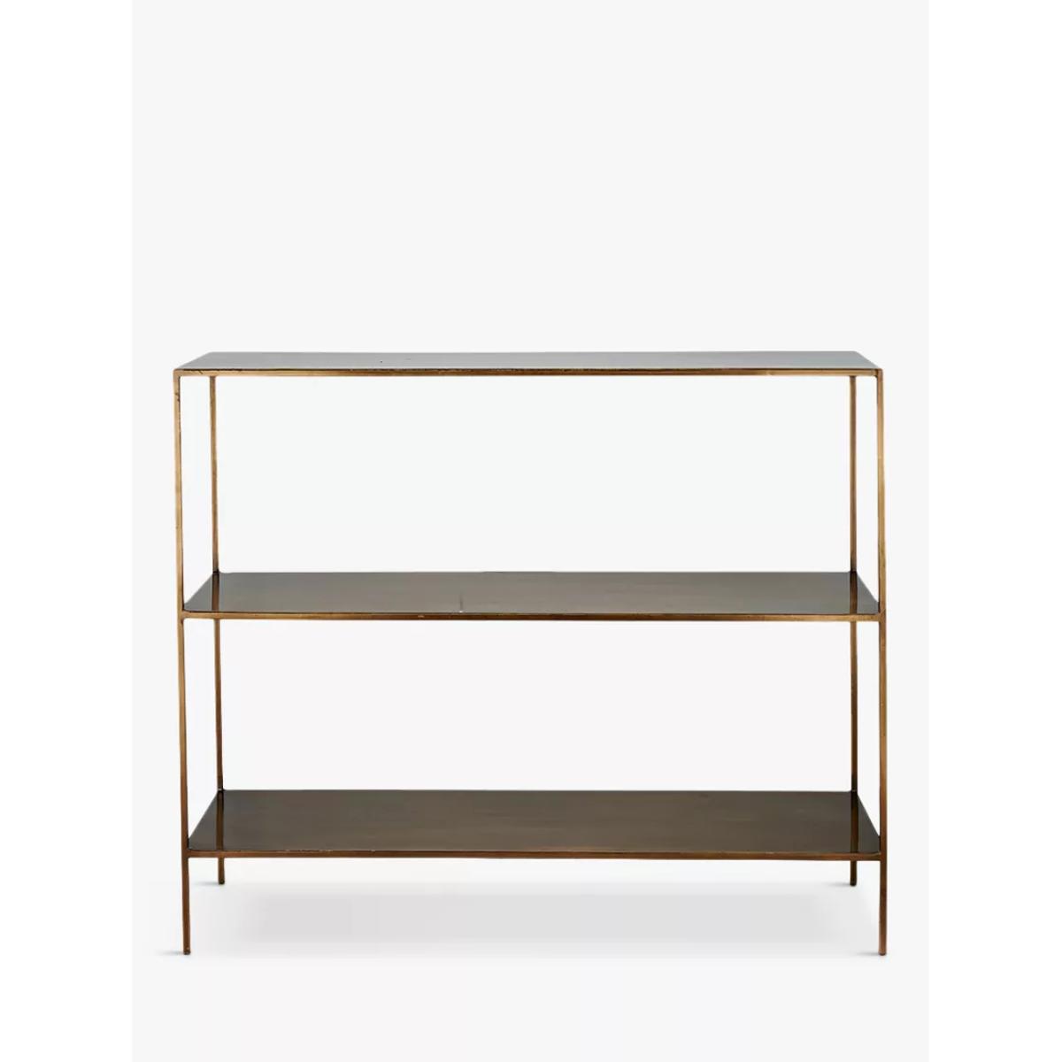 Nkuku's Mahi console table is made from high-quality iron in a brass finish and offers two handy shelves, creating a sturdy solution for both display and storage. It's a very versatile piece that is ideally positioned in a hallway, or as a sideboard in a living space. Nkuku works with artisans throughout the world, combining timeless design with traditional skills and natural materials. To care for this product we recommend using coasters for drinks glasses, the finish may mark when put in contact with hot drinks or liquid. Blot any spillage immediately with a dry cloth, do not use chemical cleaners.