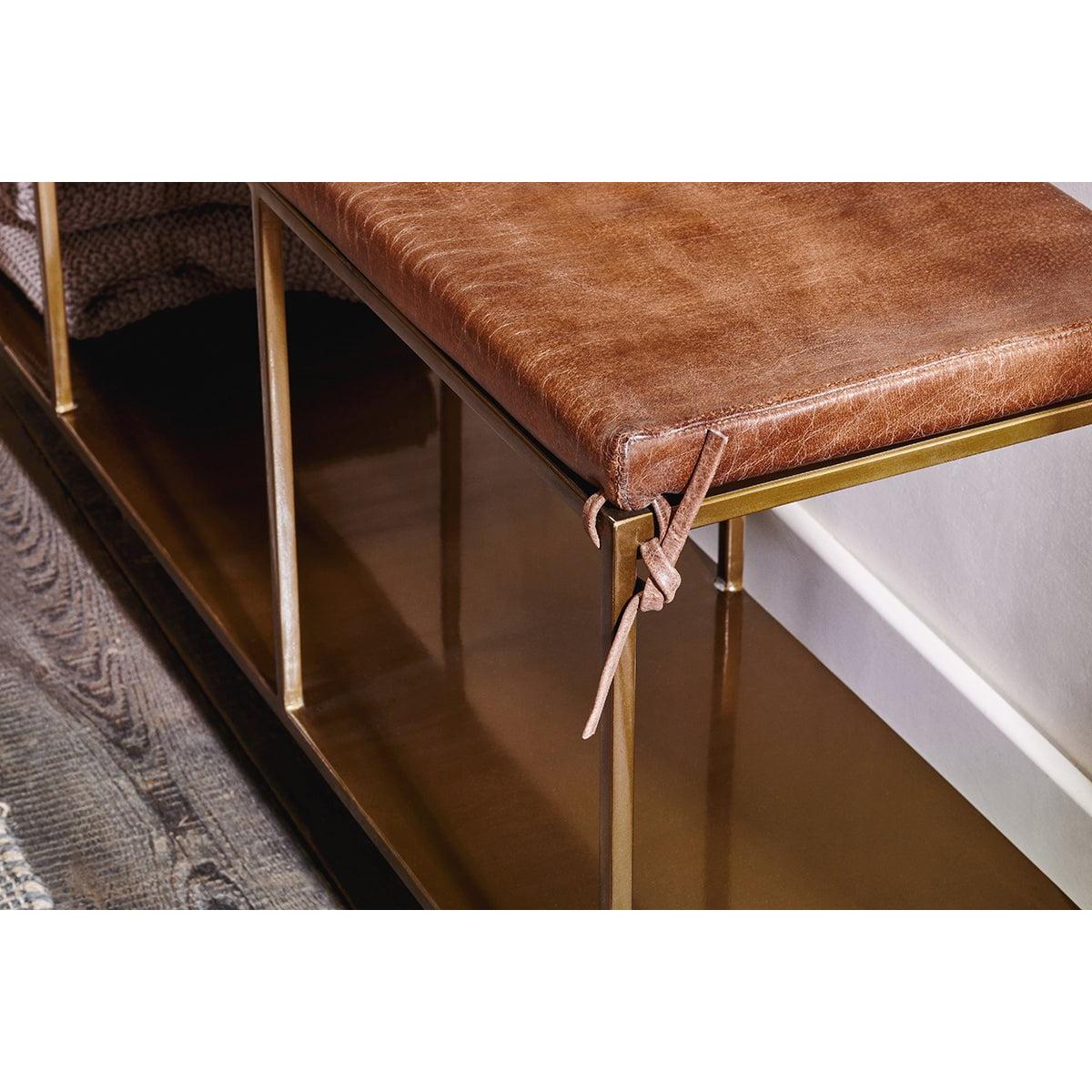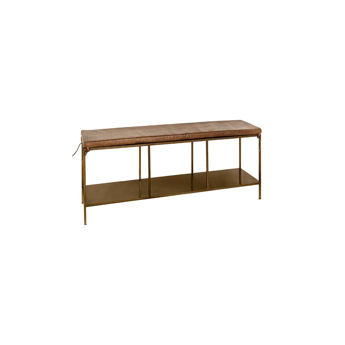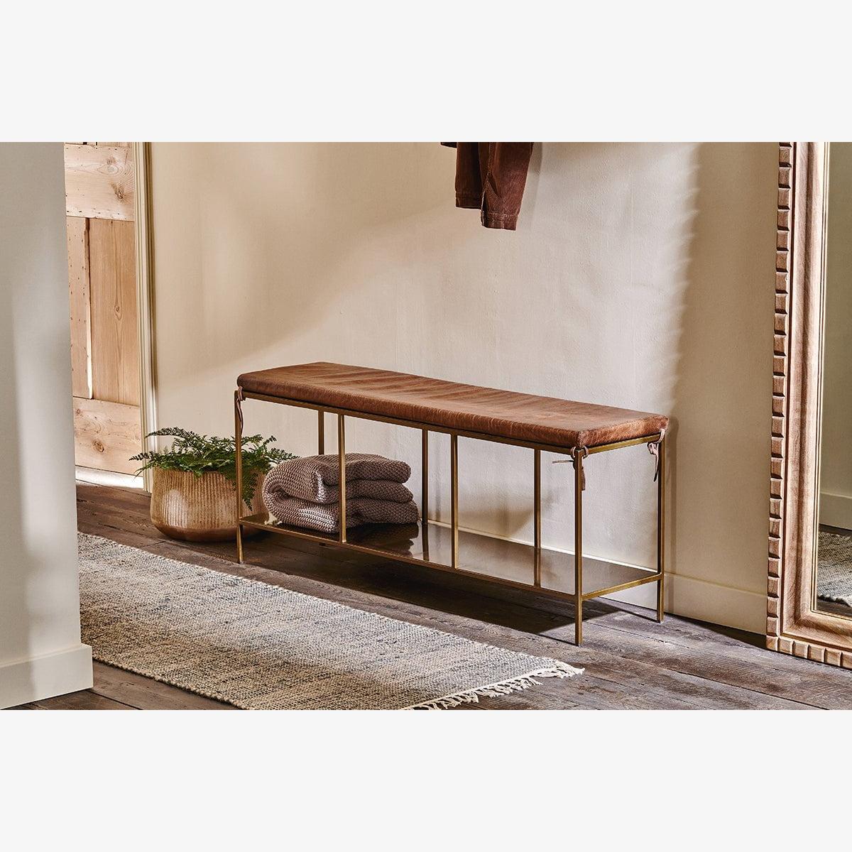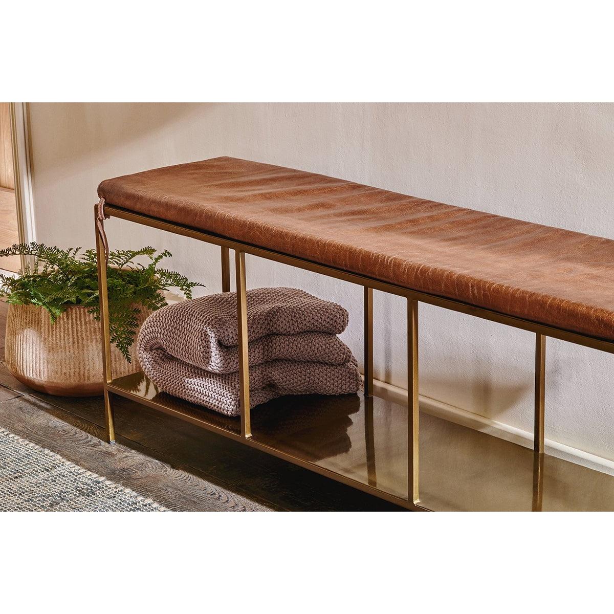 Nkuku Mahi Iron & Leather Dining Bench | Storage Furniture | Brass