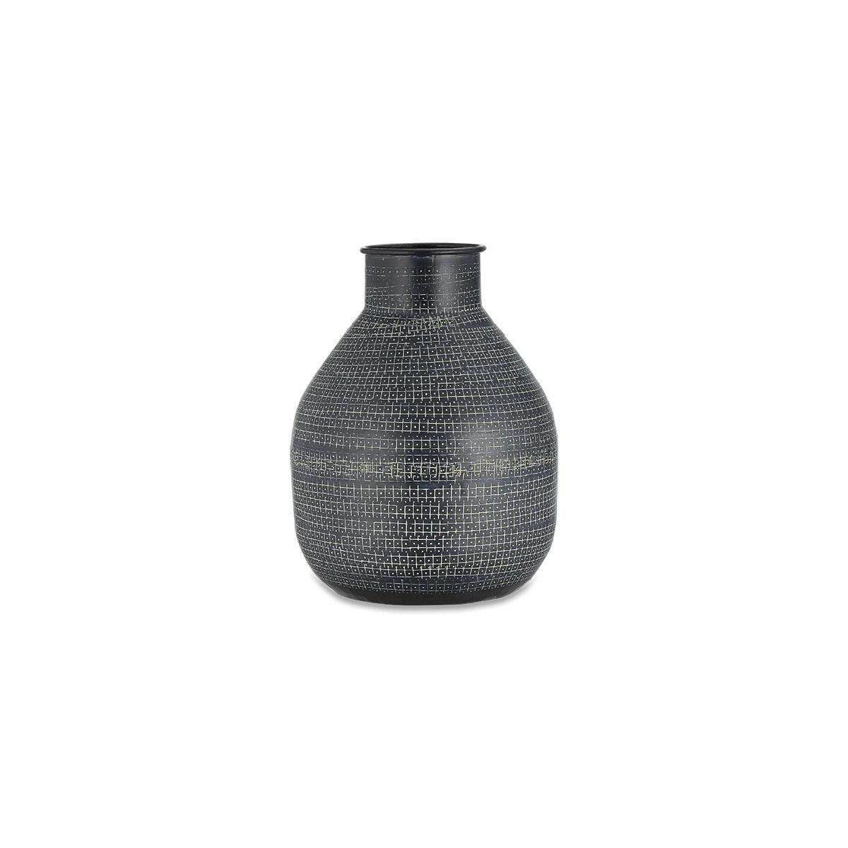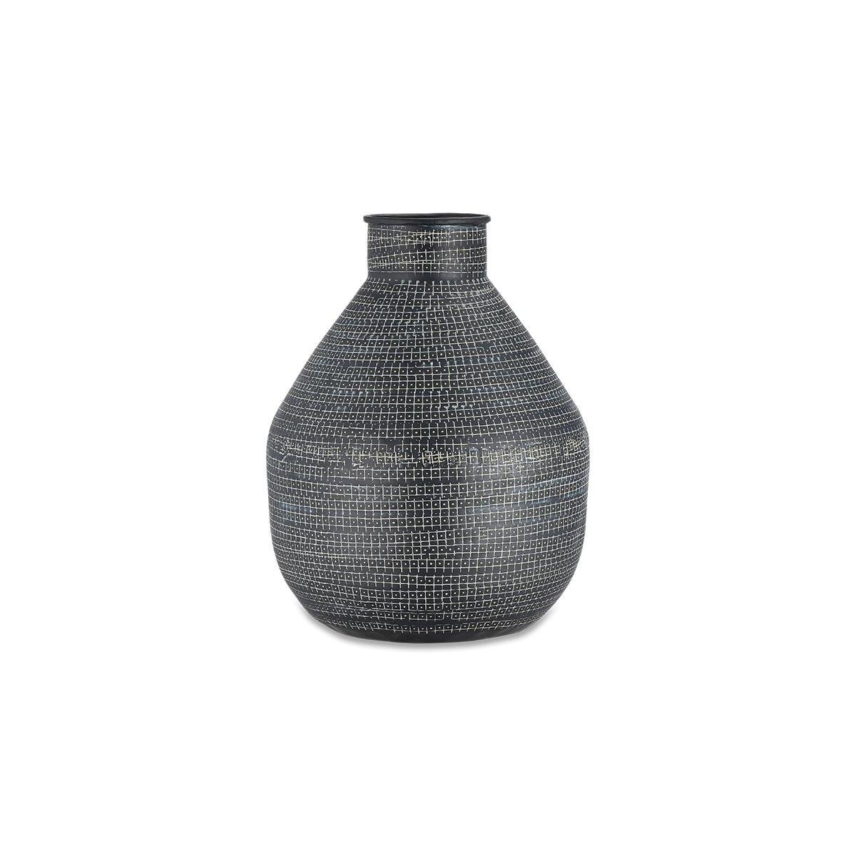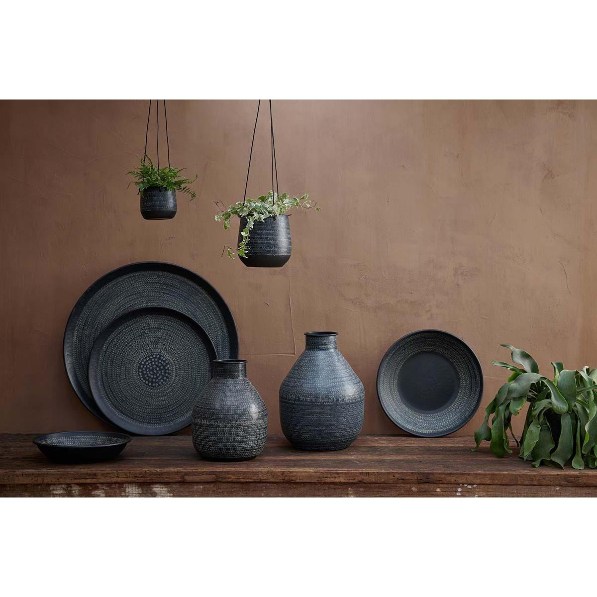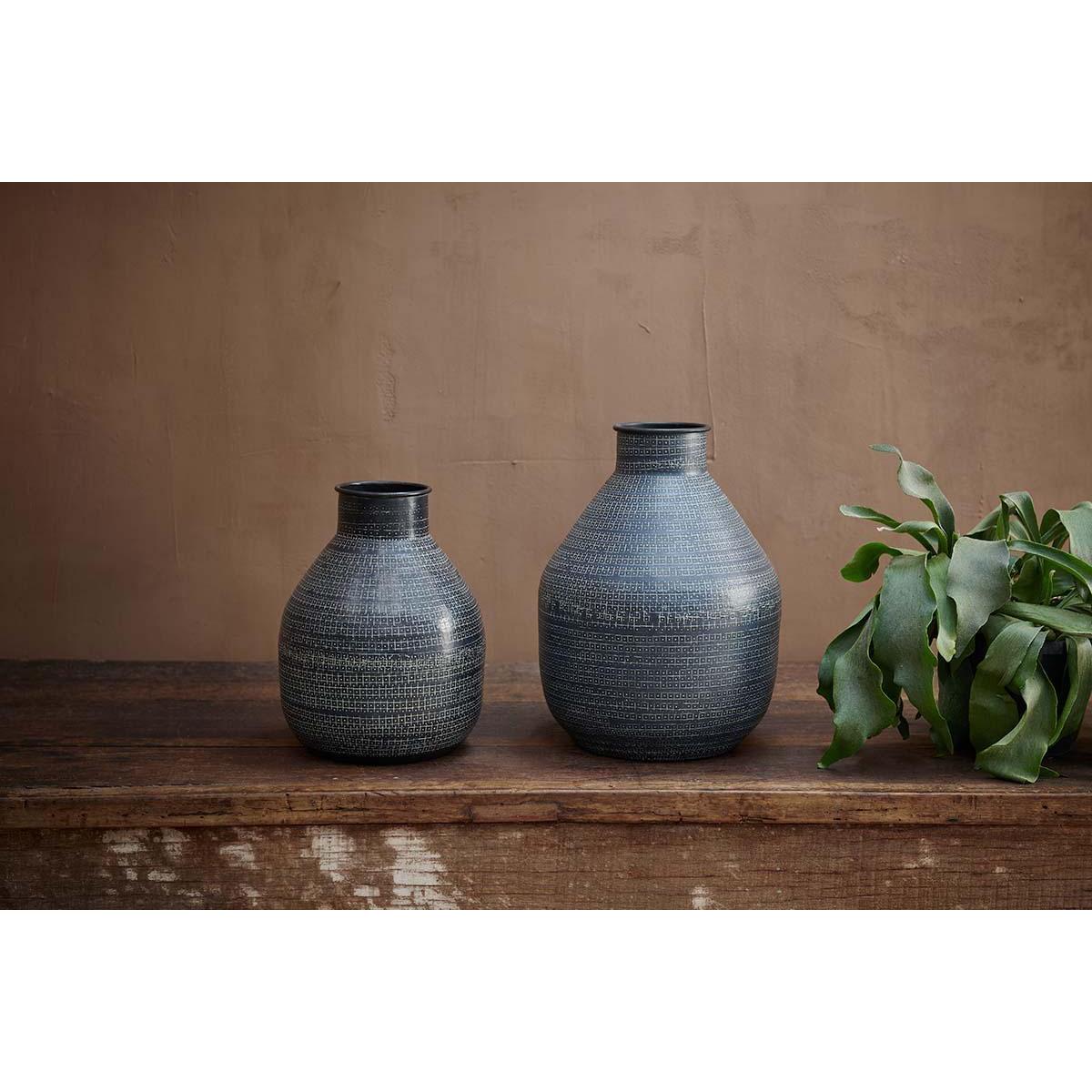 Strikingly imprinted using traditional tools, our Mahika vases have an eye-catching pattern and soft, organic shape. Perfect for dressing a sideboard or adding interest to shelving. The matt black finish provides a contrasting backdrop for dried flowers and fresh blooms.