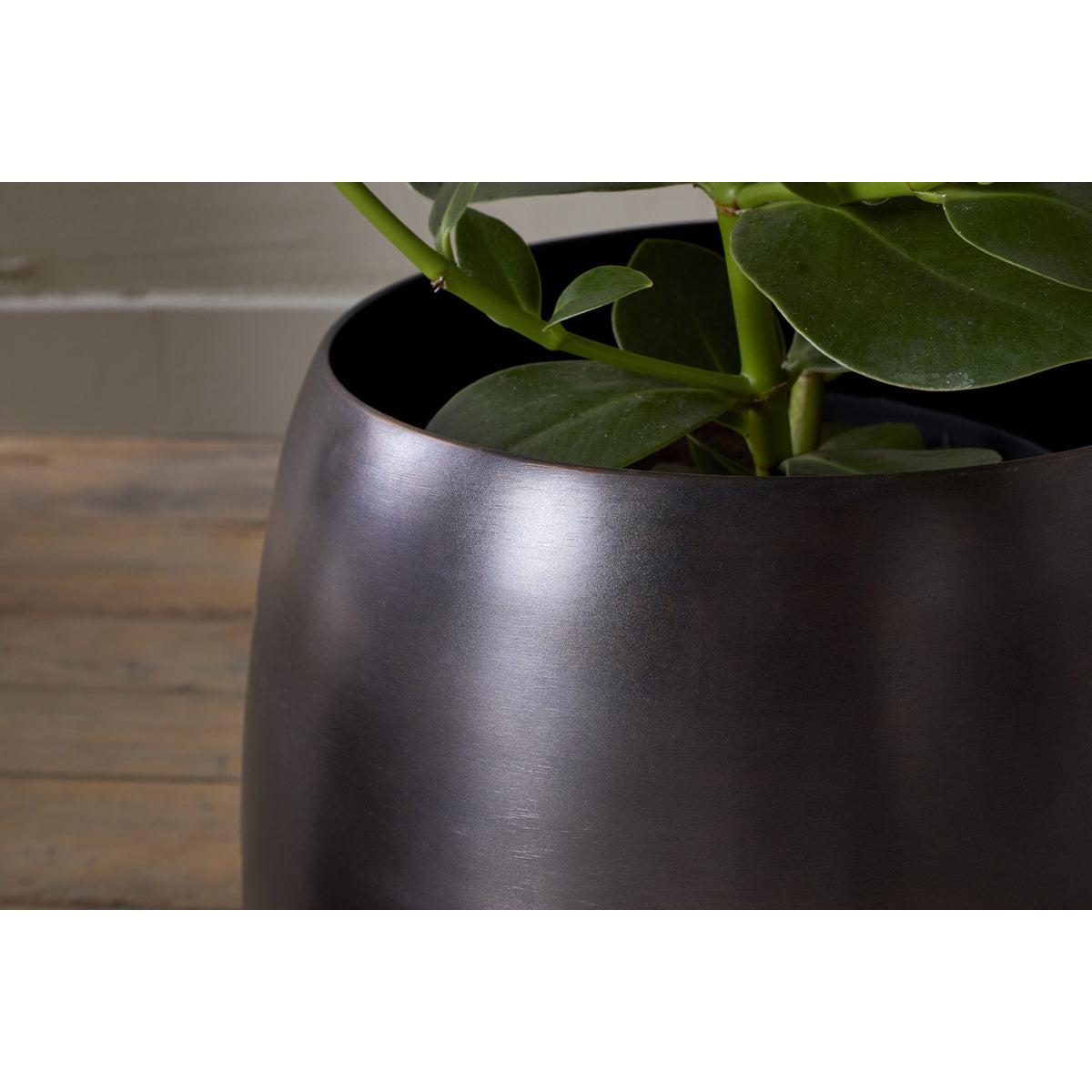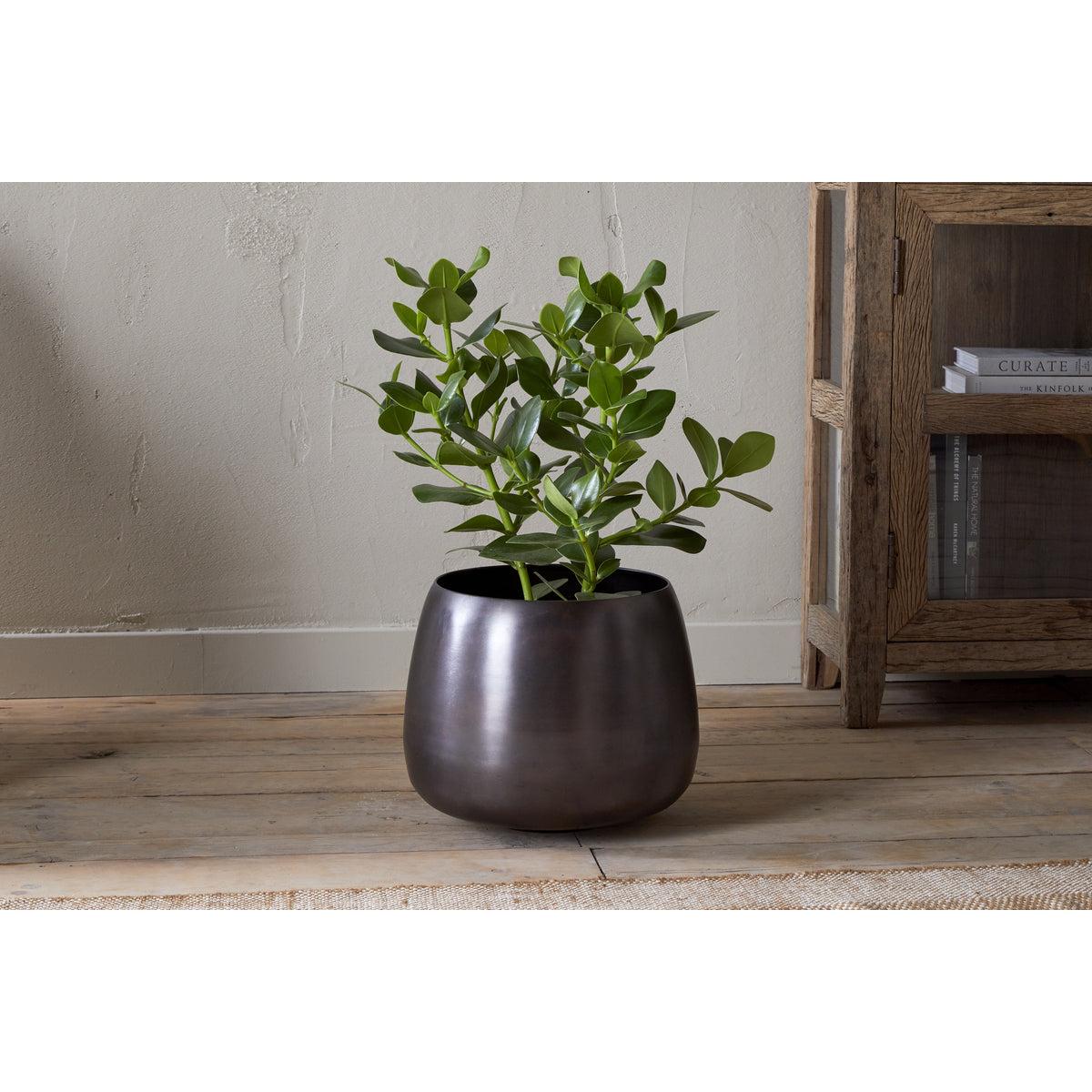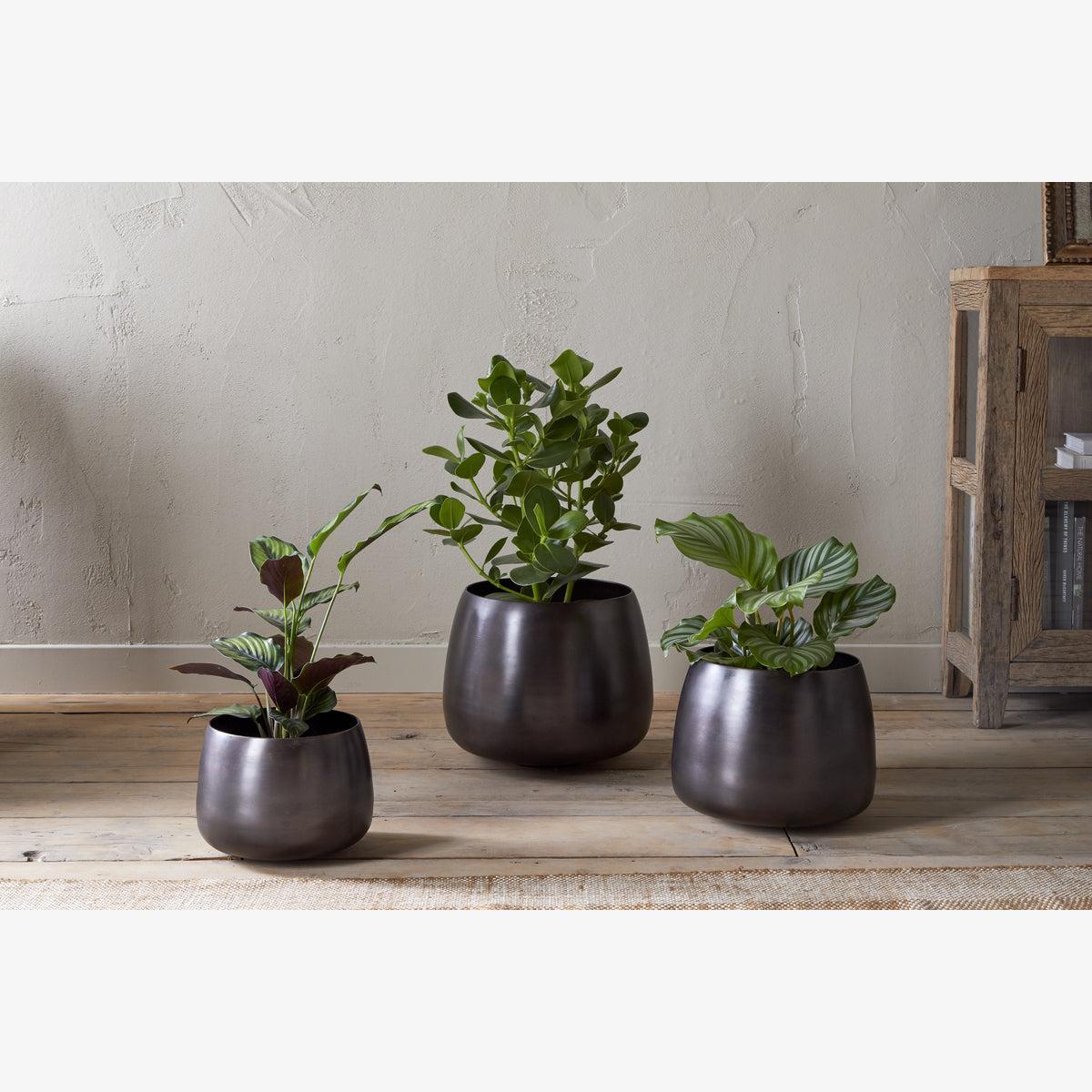 With its contemporary design and aged bronze finish, this indoor plant pot provides the perfect backdrop to enhance the rich greens of houseplants. The warm, subtly weathered surface adds depth and character, making it easy to style in a variety of interiors. Available in three sizes, it can be displayed solo or grouped in twos or threes for greater visual impact.