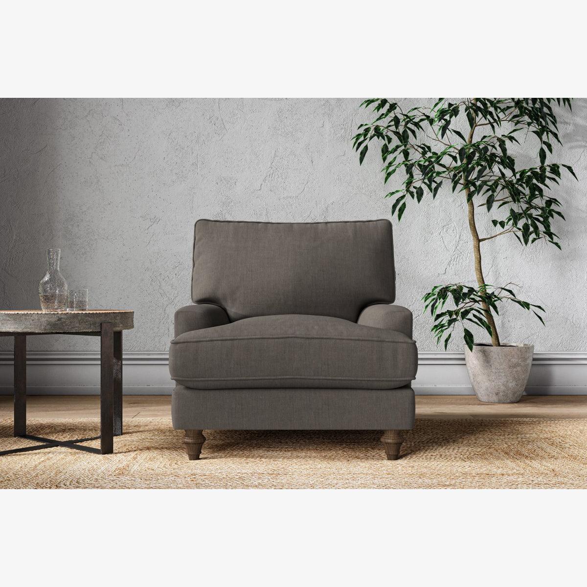 The classic shape of our Marri armchair has a timeless appeal that suits almost any interior. Each piece is handcrafted by our specialist team in our Nottinghamshire workshop combining traditional techniques with exceptional craftmanship. Well-considered details ensure lasting quality, including piped edging, separate back cushions, and hand-turned hardwood feet. The hardwood frame and high-grade steel serpentine springs are selected for enduring quality, and the cushions are made from foam with a fibre wrap for added comfort. The fabric is hand cut to size, playing close attention to the characteristics of the material, and the sculpted hardwood feet provides the finishing detail. Our upholstery fabrics are sourced from Italy’s finest mills and are chosen for their style and quality. We have selected a beautiful heavyweight, soft washed linen with an outstanding texture. Our linen is perfectly suited to upholstery, with an appealing natural, and tactile feel. It is also heavy and durable. The linen is FR treated for domestic upholstery ensuring peace of mind as well as meeting specialist UK furniture requirements. Please note, our white background cut-out photography is shown in Natural for shape and style reference. Fabric Swatch Ordering We recommend ordering fabric swatches before placing your order, giving you the chance to feel the fabric and see your colour choices within your own home. You can order up to 6 free fabric swatches by clicking here. Before placing your order, it's important to take the time to measure the space you intend to place your made-to-order furniture to ensure it fits properly. You can read more in our Sofa Buying Guide.