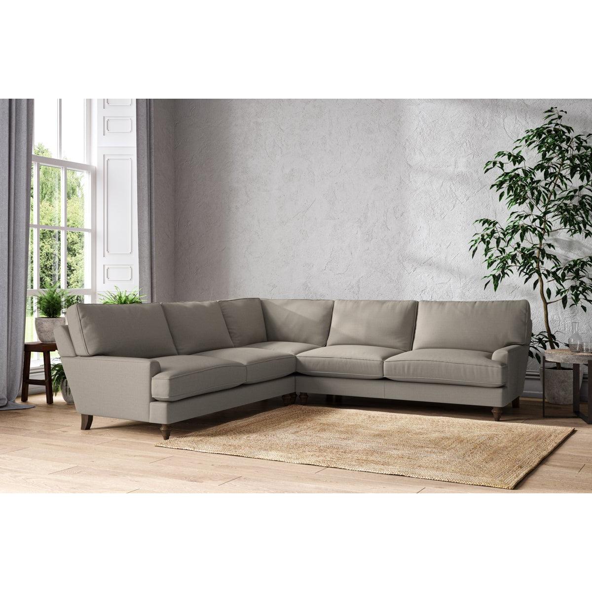 The classic design of our Marri grand corner sofa has a timeless appeal that suits almost any interior. Each piece is handcrafted by our specialist team in our Nottinghamshire workshop combining traditional techniques with exceptional craftmanship. Well-considered details ensure lasting quality, including piped edging, separate back cushions, and hand-turned hardwood feet. The hardwood frame and high-grade steel serpentine springs are selected for enduring quality, and the cushions are made from foam with a fibre wrap for added comfort. The fabric is hand cut to size, playing close attention to the characteristics of the material, and the sculpted hardwood feet provides the finishing detail. Our upholstery fabrics are chosen for their style and quality, where all fabrics are FR treated for domestic upholstery ensuring peace of mind as well as meeting specialist UK furniture requirements. Our curated colour palette offers a variety of sophisticated muted shades. Please note, our white background cut-out photography is shown in Natural for shape and style reference. Fabric Swatch OrderingWe recommend ordering fabric swatches before placing your order, giving you the chance to feel the fabric and see your colour choices within your own home. You can order up to 6 free fabric swatches by clicking here. it fit?Before placing your order, it's important to take the time to measure the space you intend to place your made-to-order furniture to ensure it fits properly. You can read more in our Sofa Buying Guide.
