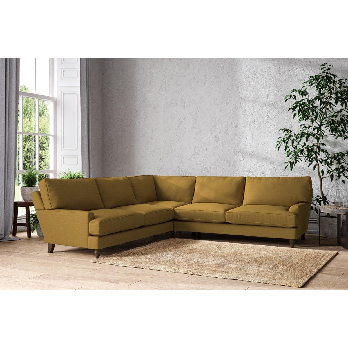 The classic design of our Marri grand corner sofa has a timeless appeal that suits almost any interior. Each piece is handcrafted by our specialist team in our Nottinghamshire workshop combining traditional techniques with exceptional craftmanship. Well-considered details ensure lasting quality, including piped edging, separate back cushions, and hand-turned hardwood feet. The hardwood frame and high-grade steel serpentine springs are selected for enduring quality, and the cushions are made from foam with a fibre wrap for added comfort. The fabric is hand cut to size, playing close attention to the characteristics of the material, and the sculpted hardwood feet provides the finishing detail. Our upholstery fabrics are chosen for their style and quality, where all fabrics are FR treated for domestic upholstery ensuring peace of mind as well as meeting specialist UK furniture requirements. Our curated colour palette offers a variety of sophisticated muted shades. Please note, our white background cut-out photography is shown in Natural for shape and style reference. Fabric Swatch Ordering We recommend ordering fabric swatches before placing your order, giving you the chance to feel the fabric and see your colour choices within your own home. You can order up to 6 free fabric swatches by clicking here. Before placing your order, it's important to take the time to measure the space you intend to place your made-to-order furniture to ensure it fits properly. You can read more in our Sofa Buying Guide.