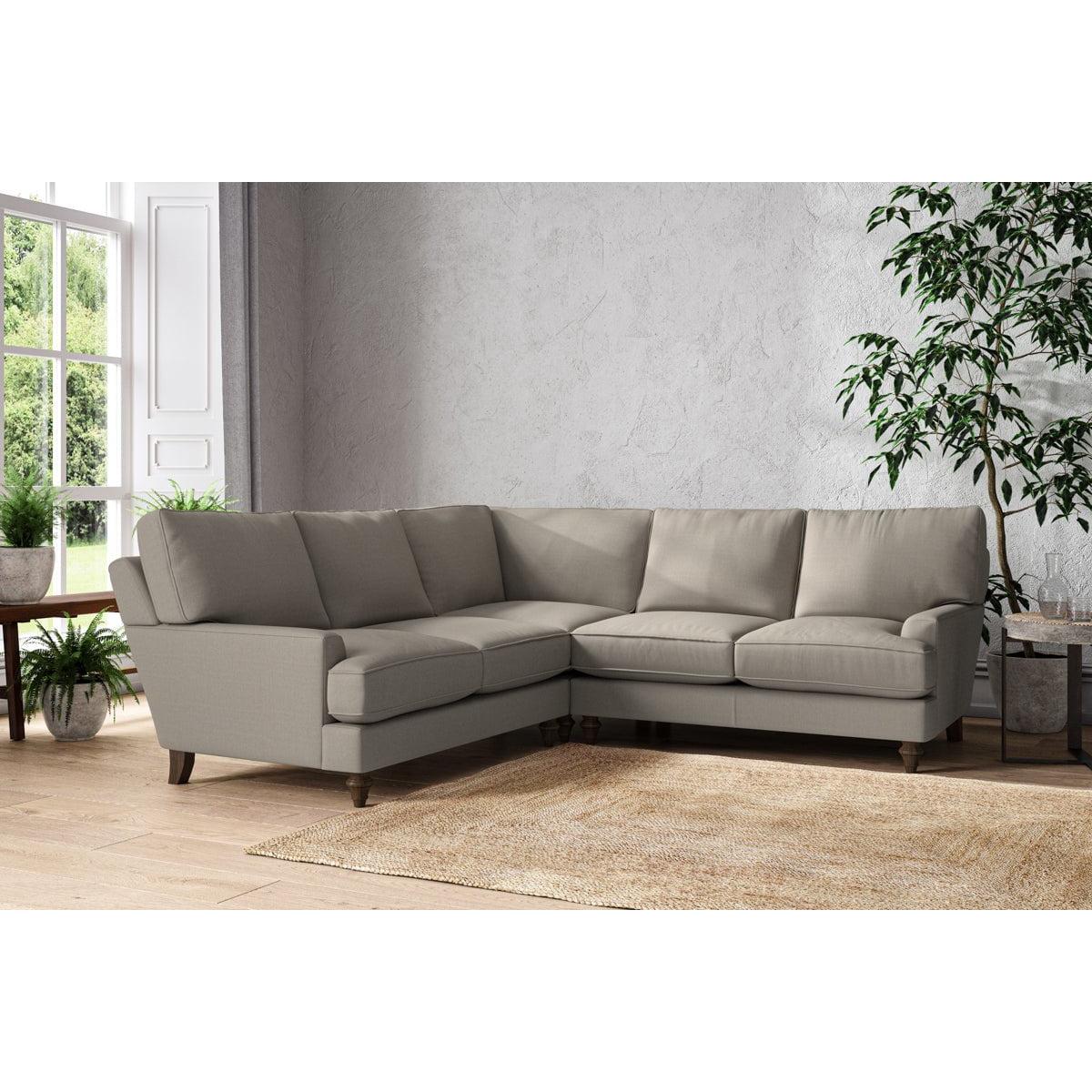 The classic design of our Marri large corner sofa has a timeless appeal that suits almost any interior. Each piece is handcrafted by our specialist team in our Nottinghamshire workshop combining traditional techniques with exceptional craftmanship. Well-considered details ensure lasting quality, including piped edging, separate back cushions, and hand-turned hardwood feet. The hardwood frame and high-grade steel serpentine springs are selected for enduring quality, and the cushions are made from foam with a fibre wrap for added comfort. The fabric is hand cut to size, playing close attention to the characteristics of the material, and the sculpted hardwood feet provides the finishing detail. Our upholstery fabrics are chosen for their style and quality, where all fabrics are FR treated for domestic upholstery ensuring peace of mind as well as meeting specialist UK furniture requirements. Our curated colour palette offers a variety of sophisticated muted shades. Please note, our white background cut-out photography is shown in Natural for shape and style reference. Fabric Swatch OrderingWe recommend ordering fabric swatches before placing your order, giving you the chance to feel the fabric and see your colour choices within your own home. You can order up to 6 free fabric swatches by clicking here. it fit?Before placing your order, it's important to take the time to measure the space you intend to place your made-to-order furniture to ensure it fits properly. You can read more in our Sofa Buying Guide.
