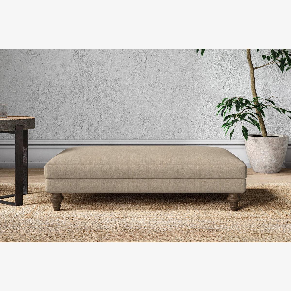 Our Marri large footstool is comfortable and stylish. It makes the perfect accompaniment to our Marri collection of armchairs and sofas, providing additional seating and a stylish footrest. The well-proportioned piece also works perfectly as an ottoman-style coffee table. Our handmade sofa collections celebrate the best of British quality in timeless designs that bring effortless style to an interior. We’ve considered every detail to ensure your made to order furniture provides comfort, longevity, and style. Handcrafted by specialists in our Nottinghamshire workshop, each piece is handmade to order using traditional techniques with exceptional craftmanship. Our upholstery fabrics are sourced from Italy’s finest mills and are chosen for their style and quality. We have selected a beautiful heavyweight, soft washed linen with an outstanding texture. Our linen is perfectly suited to upholstery, with an appealing natural, and tactile feel. It is also heavy and durable. The linen is FR treated for domestic upholstery ensuring peace of mind as well as meeting specialist UK furniture requirements. Please note, our white background cut-out photography is shown in Natural for shape and style reference. Fabric Swatch Ordering We recommend ordering fabric swatches before placing your order, giving you the chance to feel the fabric and see your colour choices within your own home. You can order up to 6 free fabric swatches by clicking here. Before placing your order, it's important to take the time to measure the space you intend to place your made-to-order furniture to ensure it fits properly. You can read more in our Sofa Buying Guide.